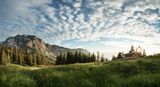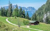 Eine besondere Bauform ist der Rundumkaser: Um einen halbwegs trockenen Melkplatz zu haben, ließ man die Dachflächen der Hütte immer weiter überstehen. Die offenen Unterstände unter dem Vordach wurden zunächst nur von einem offenen Stangengerüst umschlossen, später dann aber mit Schrotwänden massiv ausgeführt. Noch heute kannst Du diese bauliche Weiterentwicklung der Almhütten am auf die Bindalm verlegten Schiedkaser sehen, der ursprünglich auf der Feldalm unweit des Funtensees stand. Und obwohl die Almwirtschaft durch den landwirtschaftlichen Strukturwandel nach dem Zweiten Weltkrieg, besonders in den 1970er Jahren, an Bedeutung verloren hat, erlebst Du in den Berchtesgadener Bergen bis heute eine vitale Almenlandschaft.
