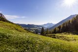 Eine besondere Bauform ist der Rundumkaser: Um einen halbwegs trockenen Melkplatz zu haben, ließ man die Dachflächen der Hütte immer weiter überstehen. Die offenen Unterstände unter dem Vordach wurden zunächst nur von einem offenen Stangengerüst umschlossen, später dann aber mit Schrotwänden massiv ausgeführt. Noch heute kannst Du diese bauliche Weiterentwicklung der Almhütten am auf die Bindalm verlegten Schiedkaser sehen, der ursprünglich auf der Feldalm unweit des Funtensees stand. Und obwohl die Almwirtschaft durch den landwirtschaftlichen Strukturwandel nach dem Zweiten Weltkrieg, besonders in den 1970er Jahren, an Bedeutung verloren hat, erlebst Du in den Berchtesgadener Bergen bis heute eine vitale Almenlandschaft.