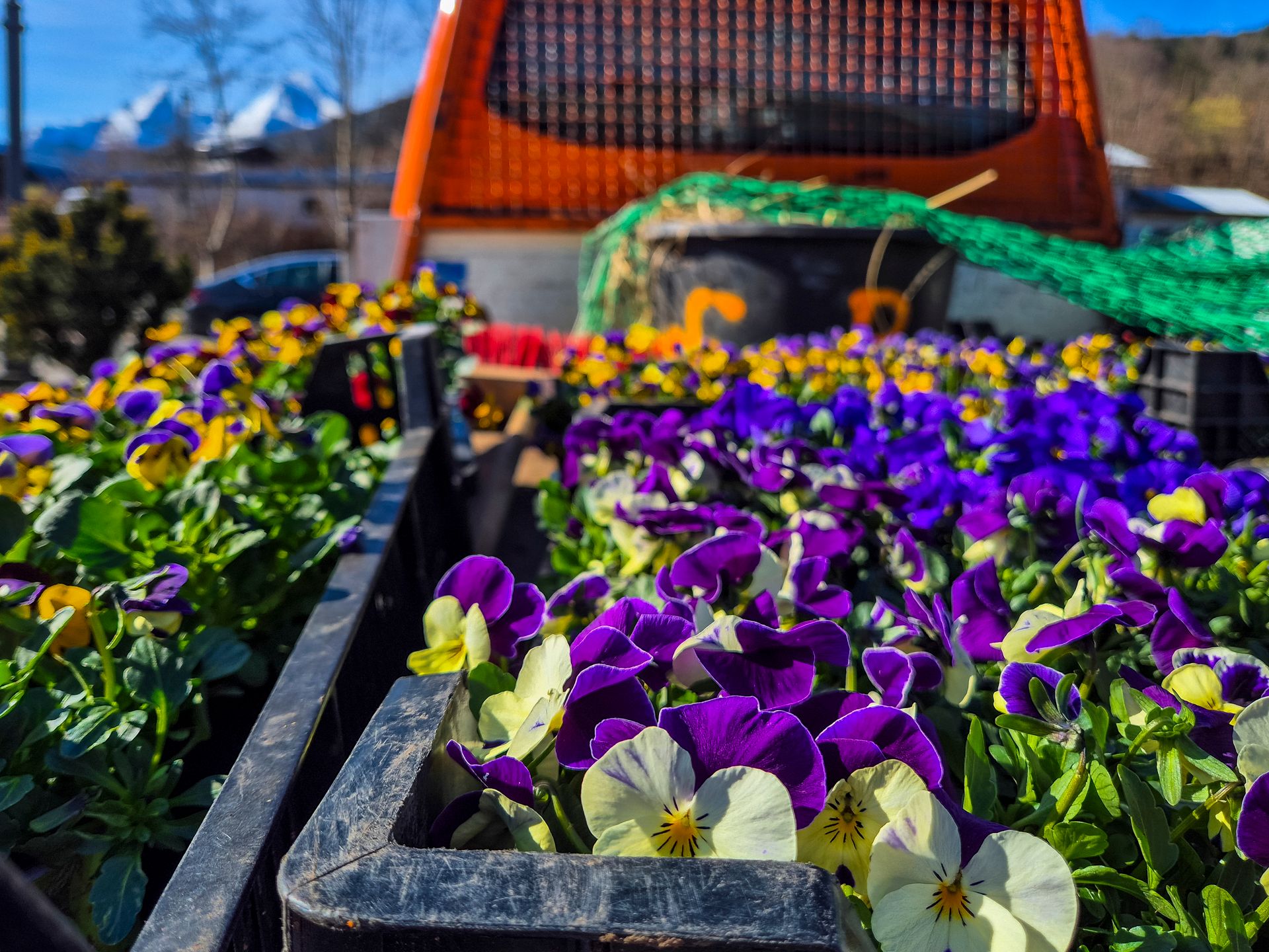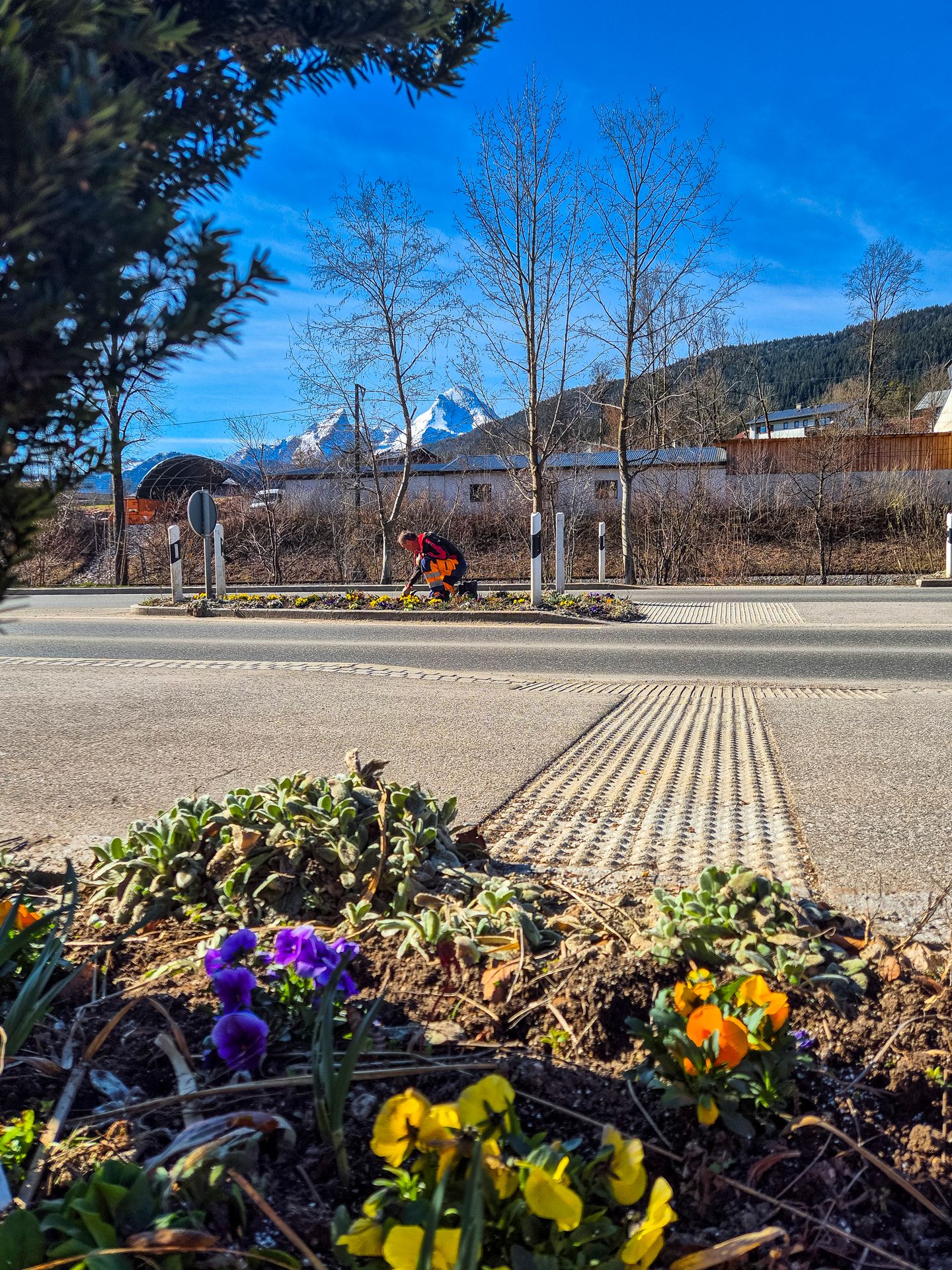 Dieses Jahr hat Florian für seine Aufgabe unzählige Stiefmütterchen eingekauft: „Die duften unheimlich gut!“. Das Gestalten eine Verkehrsinsel vergleicht er mit „dem schmalen Grat zwischen Ordnung und Chaos“. Im Vordergrund steht für ihn, dass die Verkehrsinseln lebendig wirken, natürlich. „Darauf muss man bei der Pflanzenauswahl und beim Planen achten – wir wollen keinen königlichen Garten, aber auch keine komplett naturbelassene Almwiese,“ versucht er die Herausforderung zu beschreiben.
