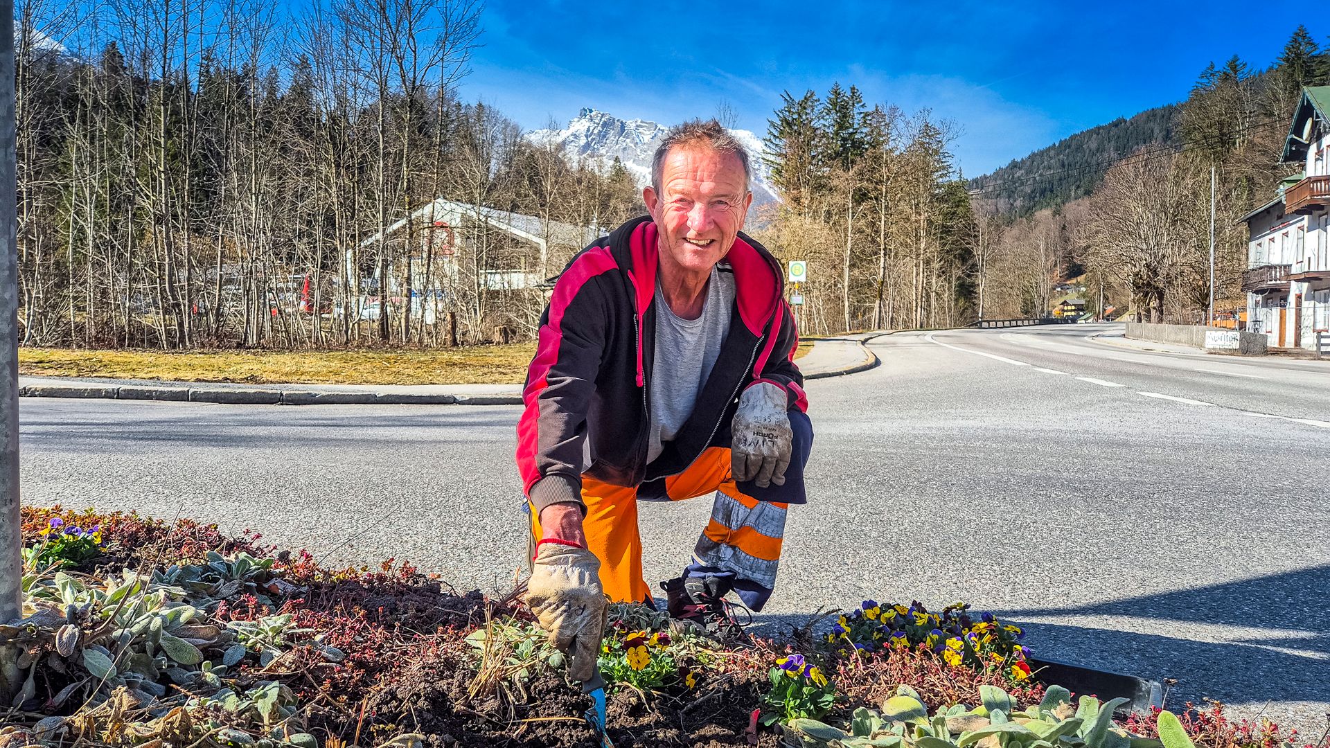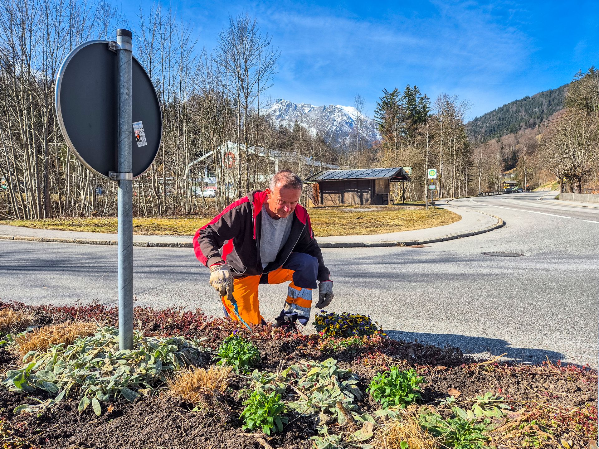 In welcher Gemeinde im Talkessel es auf den Verkehrsinseln am Schönsten blüht – darüber lässt sich sicher trefflich streiten. In Bischofswiesen gibt es jedenfalls einen Mann, dem die Bepflanzung dieser kleinen Paradiese mitten im Autoverkehr sehr am Herzen liegt.