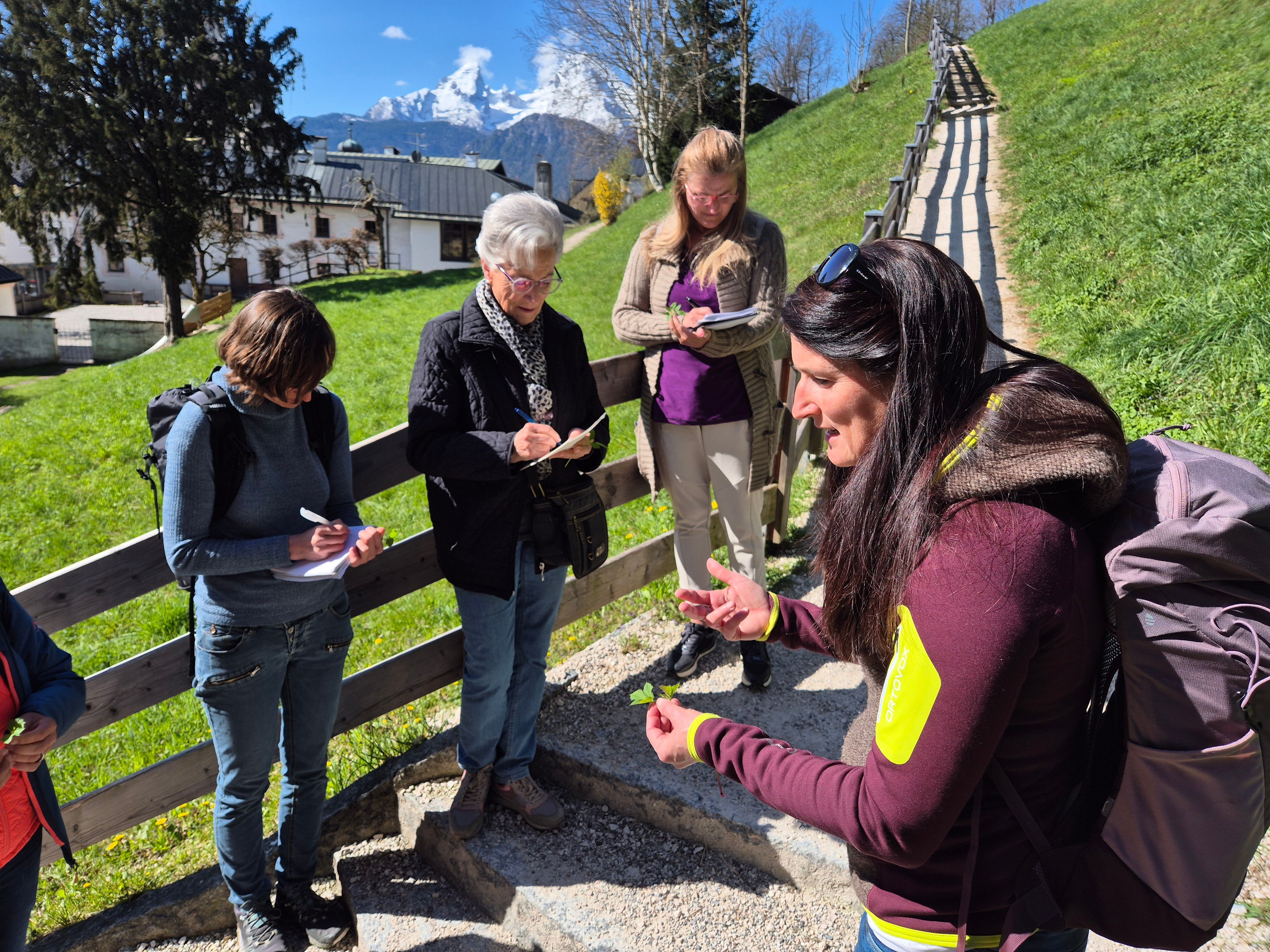Es gibt diese besonderen Tage. Eigentlich ist alles, wie immer, aber plötzlich wird das, was immer schon da war, richtig sichtbar. Genau so ein Tag war dieser Dienstag im Frühling, als sich eine kleine Gruppe von Menschen am Schlossplatz in Berchtesgaden trifft, um mit weit offenen Augen durch die Natur zu streifen. Begleitet wird die kleine Exkursion von Kräuterpädagogin Monika Angerer aus Marktschellenberg.