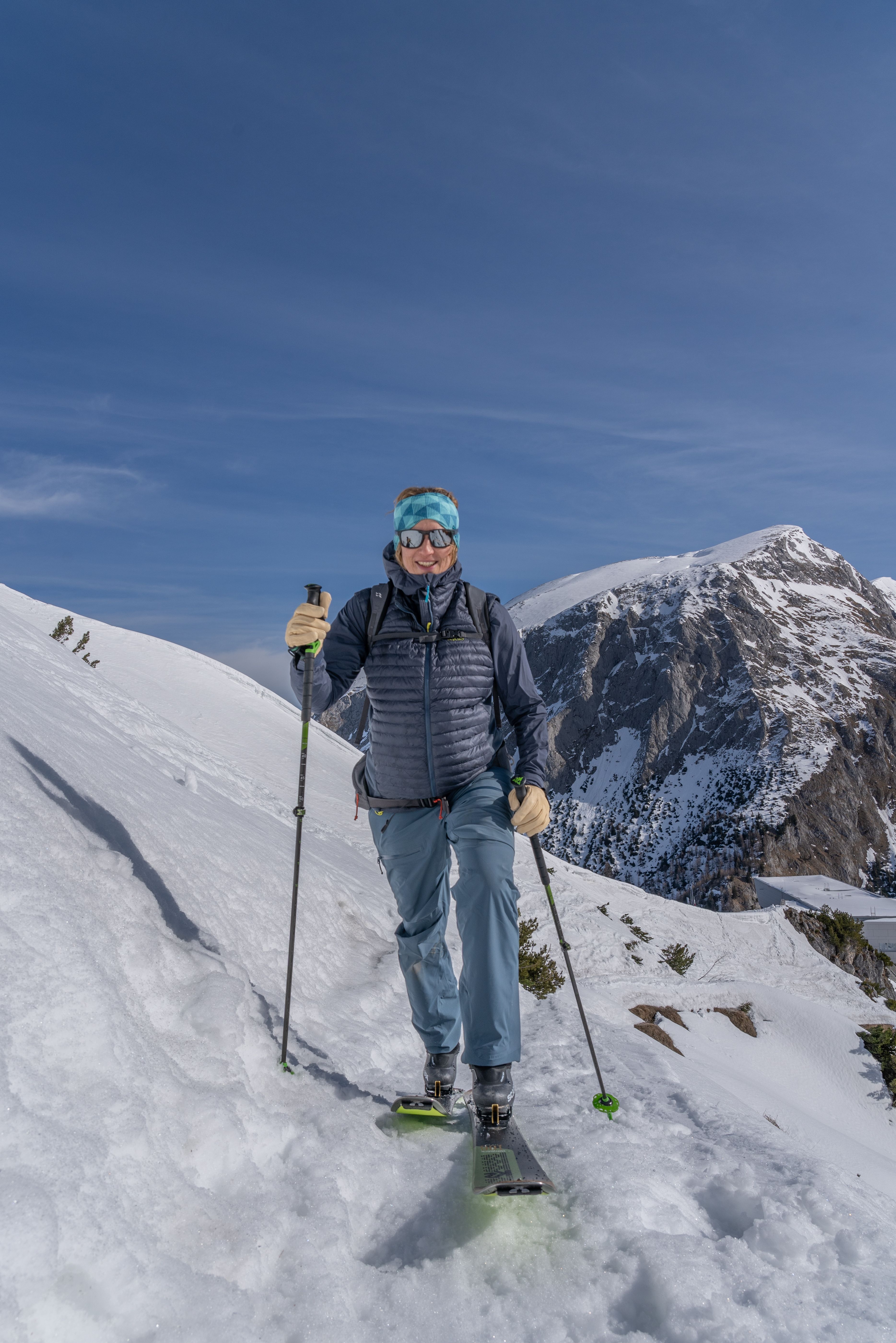 Heute ist die einzige Berchtesgadener Bergführerin eine von nur etwa 20 weiblichen Bergführern in ganz Deutschland – das entspricht gerade einmal vier Prozent. Neben ihren Sommer- und Wintertouren arbeitet Nina auch als Industriekletterin in München. Dort verschafft sie sich mit komplexen Seiltechniken Zugang zu schwindelerregenden Höhen, wo keine Gerüste oder Hebebühnen hinkommen. Ihre Aufgabe reicht von Höhenarbeiten an Fassaden bis hin zu Einsätzen in engen Schächten – ein Beruf, bei dem sich Nina voll und ganz auf ihre Fähigkeiten verlassen kann, die sie als Bergführerin erlernt hat. Zu Hause in Berchtesgaden dient Nina Yoga als Ausgleich zur Arbeit. Sie bietet auch Kurse in der Natur an, zum Beispiel am Stöhrhaus oder auf Kühroint, wo ihre Teilnehmer lernen, wie die geistige und körperliche Stärke des Yoga den alpinen Sport bereichern kann. Für Nina ist Yoga der perfekte Ausgleich zum Bergsteigen – es fördert Beweglichkeit, löst Verspannungen und stärkt die mentale Konzentration, die bei anspruchsvollen Touren oft entscheidend ist. Seit 2023 ist Nina nun die erste Vorsitzende des traditionsreichen Berchtesgadener Bergführervereins und repräsentiert damit die neue Generation eines Traditionsberufes. 2024 wurde sie zudem Mutter des kleinen Laurenz. Zusammen mit ihrem Mann Thomas lebt Nina auf einem Bauernhof in Ramsau. Der ideale Ort für eine Bergführerin, denn nirgendwo in Deutschland gibt es pro Kopf mehr Bergführer als in Ramsau, dem Dorf in Berchtesgaden, das 2015 offiziell zum ersten Bergsteigerdorf Deutschlands gekürt wurde