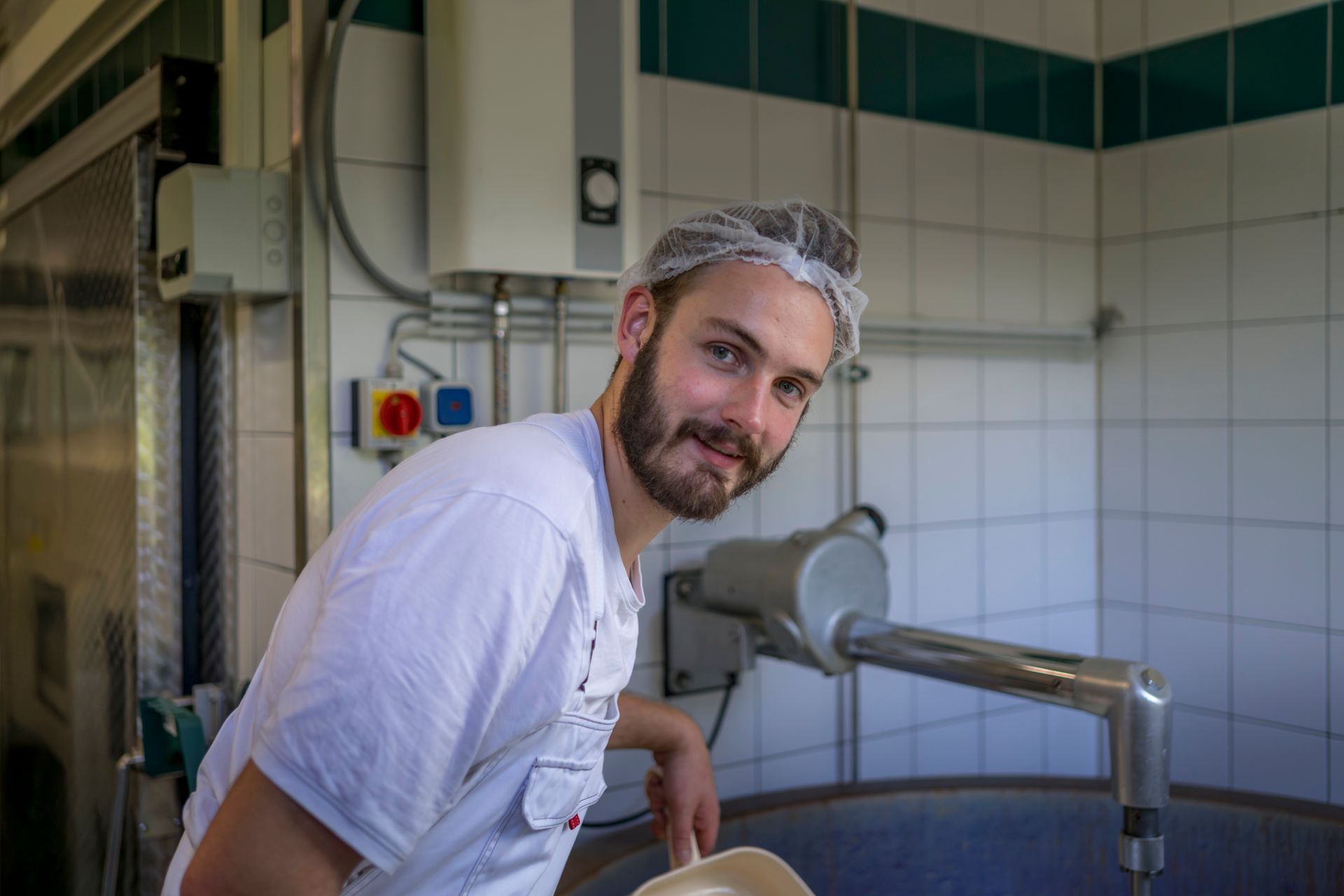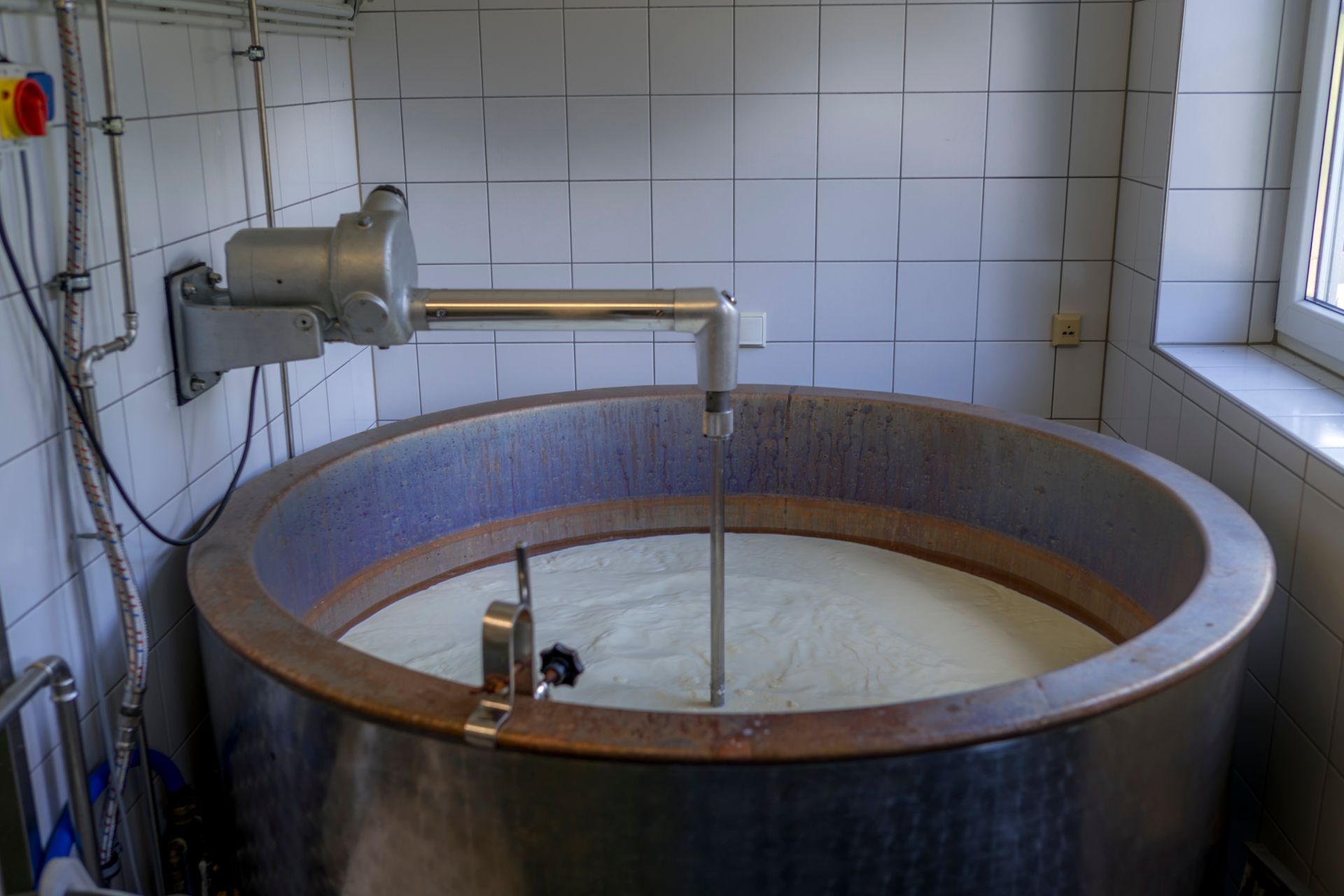 Herzstück der Käserei ist ein 60 Jahre alter Kupferkessel. 750 bis 1000 Liter Milch pro Durchgang werden darin erhitzt.