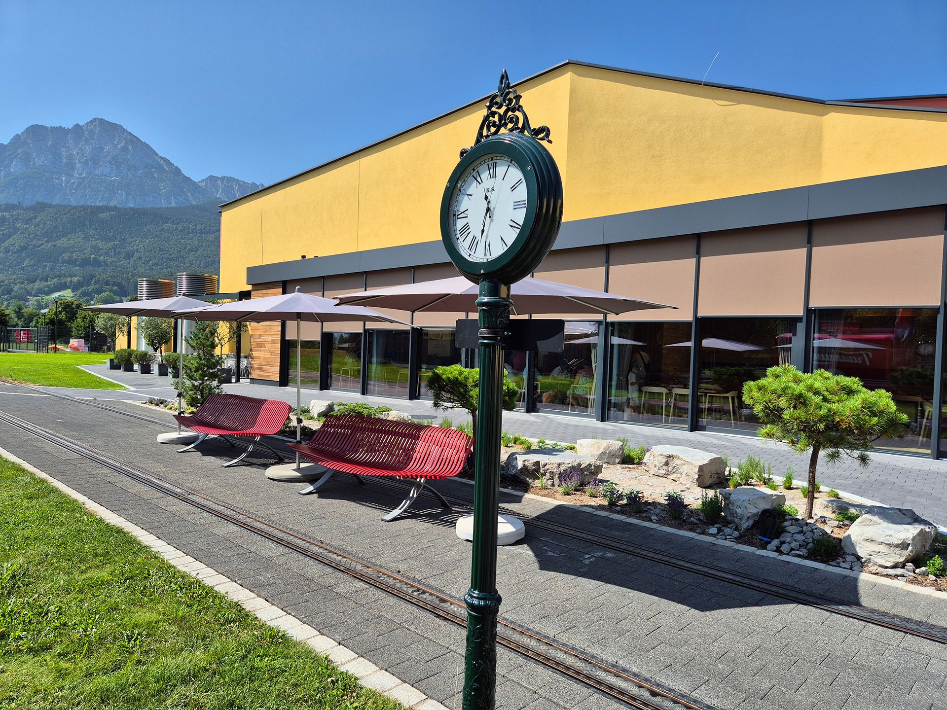 Jetzt haben es die Kinder eilig: Die Eisenbahn am Bahnhof im 20.000 Quadratmeter großen Traumwerk Park darf nicht verpasst werden. Die Schaffnerin knipst Fahrkarten, spricht ihre Durchsage und pfeift zur Abfahrt. Auf 1,3 Kilometern schlängelt sich die Route durch das weitläufige Gelände – vorbei am historischen Zirkuszelt, dem riesigen Abenteuerspielplatz und den ungehinderten Ausblicken auf die majestätischen Berge. Jeder Bahnübergang wird durch Pfiff angekündigt und so gelingt eine lustige, unterhaltsame Runde durch den Traumwerk Park.