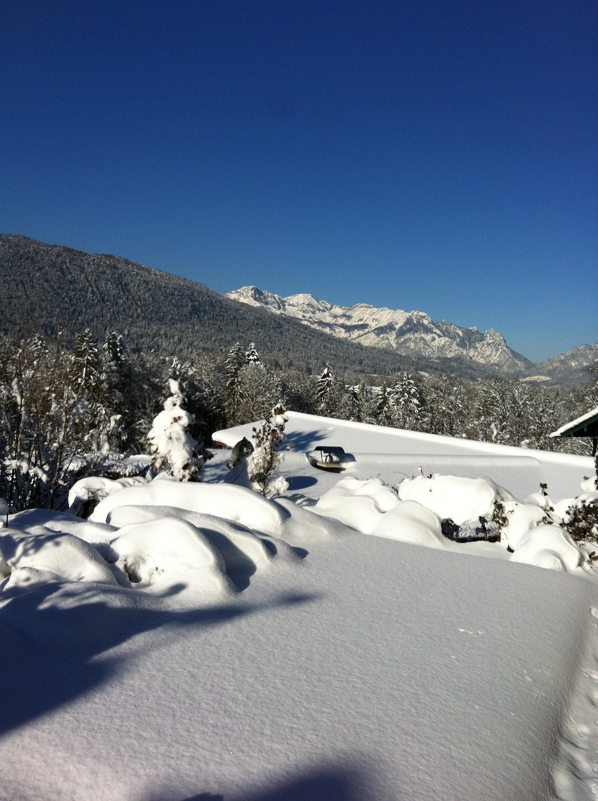 The holiday flat, approx. 45 m² in size, is a self-contained flat on two floors, i.e. the bedroom and shower/WC are located in the basement. On the ground floor, you will find a cosy living room with a dining area, sofa suite (pull-out) and kitchenette, as well as the hallway. The flat has a sunny terrace with a magnificent view of the mountains. The furnishings are comfortable and include satellite TV and radio. A washing machine is available in the house. Please discuss your arrival time with us. A private parking space is available free of charge for your car, or a garage is available on request (for a fee). The holiday flats are the ideal starting point for numerous walks, hikes or mountain tours in the unspoilt nature of the Alpine National Park. By car or from the nearby bus stop, you can easily reach the well-known excursion destinations of the Berchtesgadener Land or the neighbouring towns of Salzburg and Bad Reichenhall. Restaurants and shopping facilities can be found in the surrounding area. In winter, there are cleared winter hiking trails, cross-country ski trails, an ice rink and toboggan runs not far from the house.