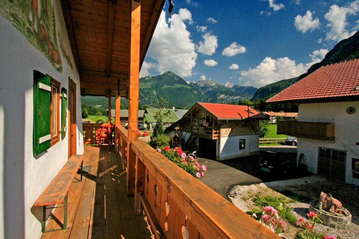 Urlaub mit einmalig schönen Alpenpanorama. Doppelzimmer und Mehrbettzimmer im Herzen des Berchtesgadener Landes. Wandertouren zum Watzmann, Grünstein, Jenner und Königssee oder im Winter die Langlaufloipe beginnen direkt vor der Haustüre. Auch Mountainbiking, Rodeln und Skifahren (der Grünsteinlift ist gleich auf der anderen Straßenseite) macht bei uns Spaß. Im Sommer lädt das nahe gelegene Schornbad (1km) mit seinen beheizten Schwimmbecken zu ausgiebiger Badegaudi ein. Weitere Freizeitmöglichkeiten bieten Berchtesgaden (5km), Bad Reichenhall (20km) und Salzburg (20km).
