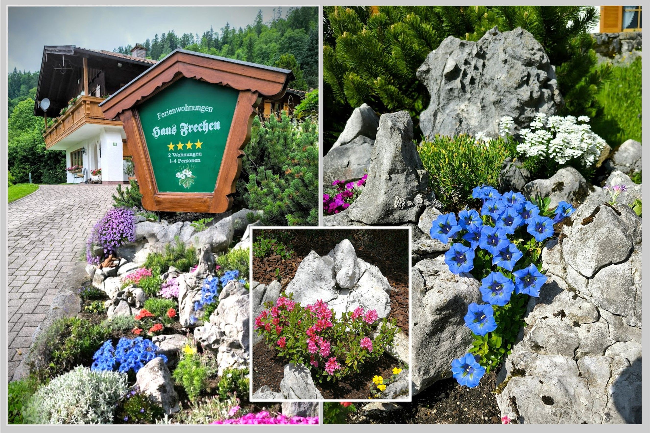 Dear guests, our house is located on the historic Obersalzberg, district Resten. The very quiet, sunny south-facing location and the magnificent panoramic mountain view will delight you. Enjoy your vacation at an altitude of 1000 meters in the pure mountain air, away from the hustle and bustle and traffic. Our well-equipped and well-maintained 3 and 4 star apartments with 30 m² and 60 m² leave nothing to be desired. Equipped with table and deck chairs, the veranda and the large balcony invite you to relax. For your internet activities a free WLAN HotSpot is available. You can comfortably end your vacation day in the mountain hut Holzkäfer, a restaurant with excellent cuisine, 800 meters away. Just nearby there is also in a small grocery store for your breakfast rolls and the stop if you want to use the local bus line for free. Our house is the starting point for mountain hikes and mountain tours in the area Obersalzberg, Roßfed-Zinken, Hoher Göll and Kehlstein. In the immediate vicinity is the Obersalzberg Documentation Center, an eagle enclosure and the bus departure point to the Kehlstein. As your hosts, we are happy to be there for you with advice and support.
