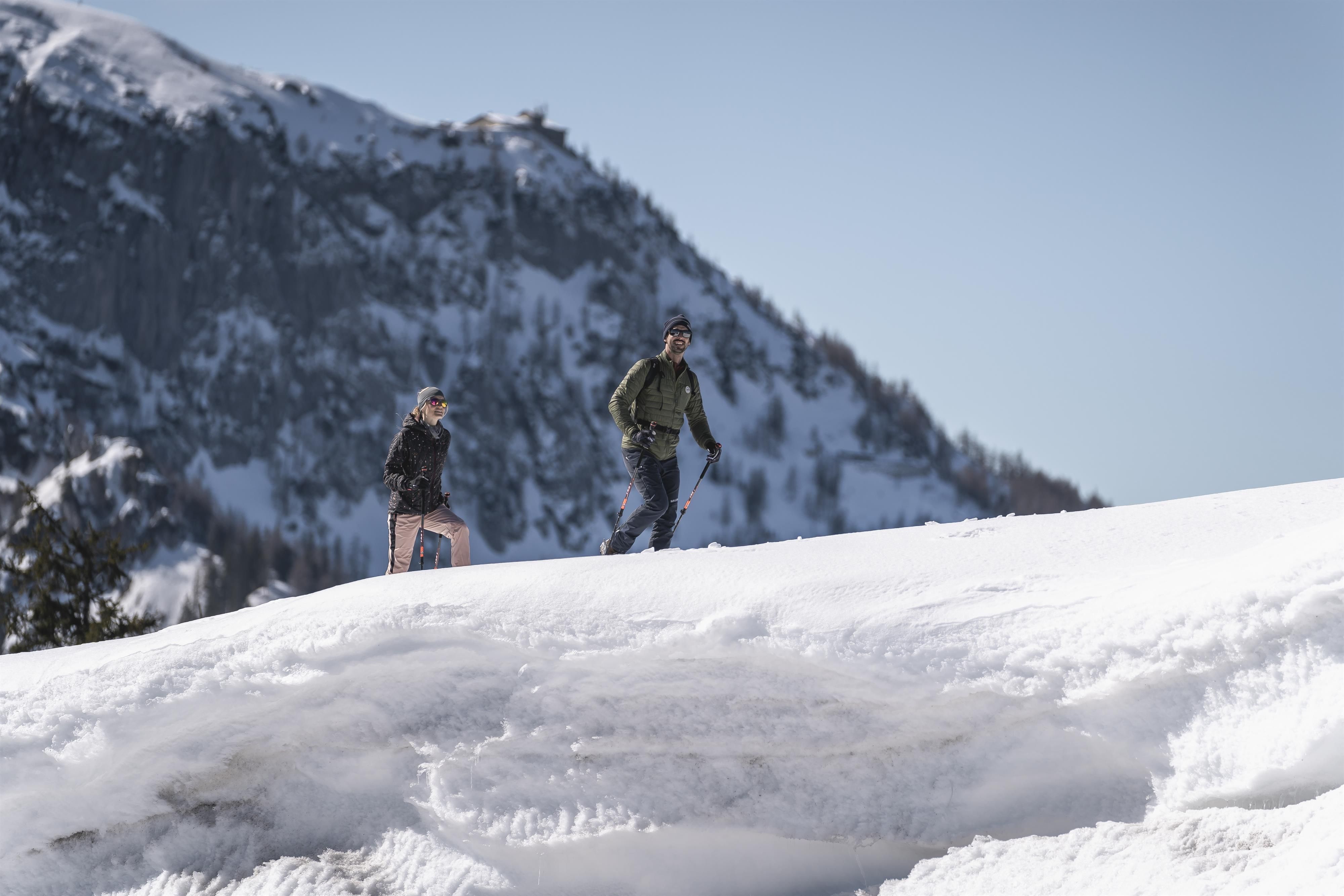Heilklimatische Winterwanderung RossfeldStartpunkt der Tour ist die Mautstelle Nord. Von hier geht es entlang des ausgewiesenen Skitourenweges hinauf über die Rossfeld Skihütte zum Gipfel des Rossfeldes. Während der Tour erfahren Sie Wichtiges über die Tiere im Winter und das richtige Verhalten in der winterlichen Bergwelt. Nach einer Einkehr und dem Genuss der sagenhaften Aussicht vom Dachstein über Salzburg, den Untersberg bis hinunter nach Berchtesgaden, geht es zurück zum Startpunkt der Tour.