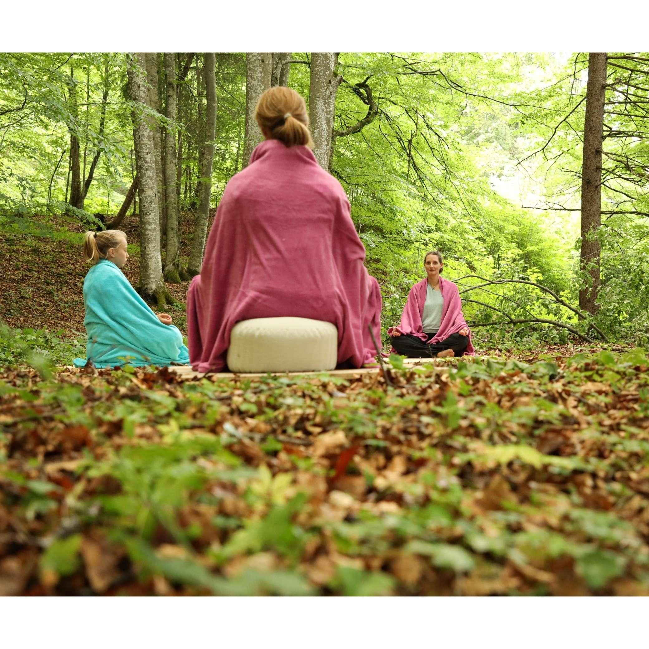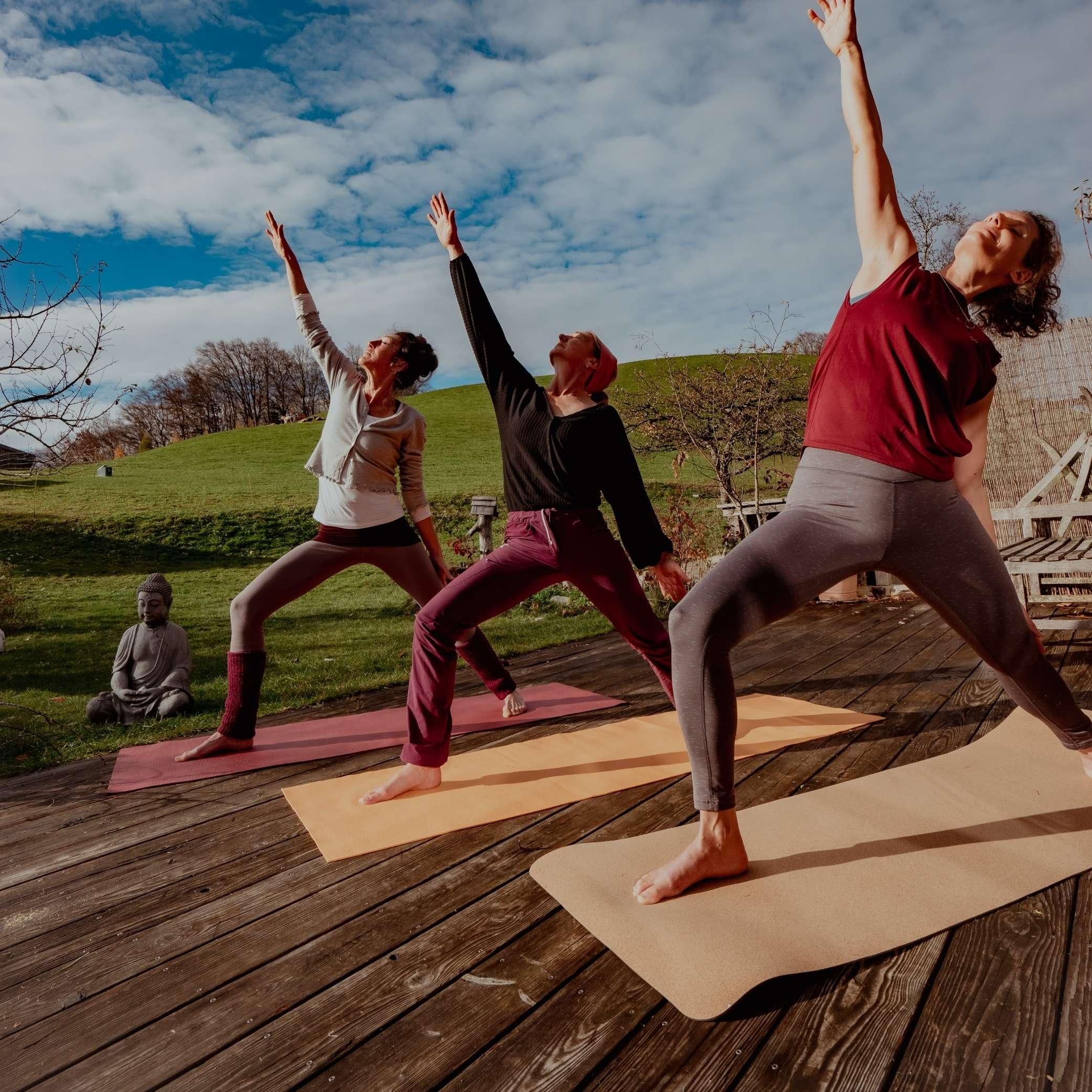 - Drei stärkende Yogaeinheiten: Wir verbinden Körper und Geist in drei gemeinsamen Praxiseinheiten. Bei schöner Witterung praktizieren wir unter freiem Himmel inmitten der Natur. Sollte uns das Wetter nicht nach draußen lassen, finden die Einheiten via Zoom im Anschluss an die gemeinsame Meditation statt.