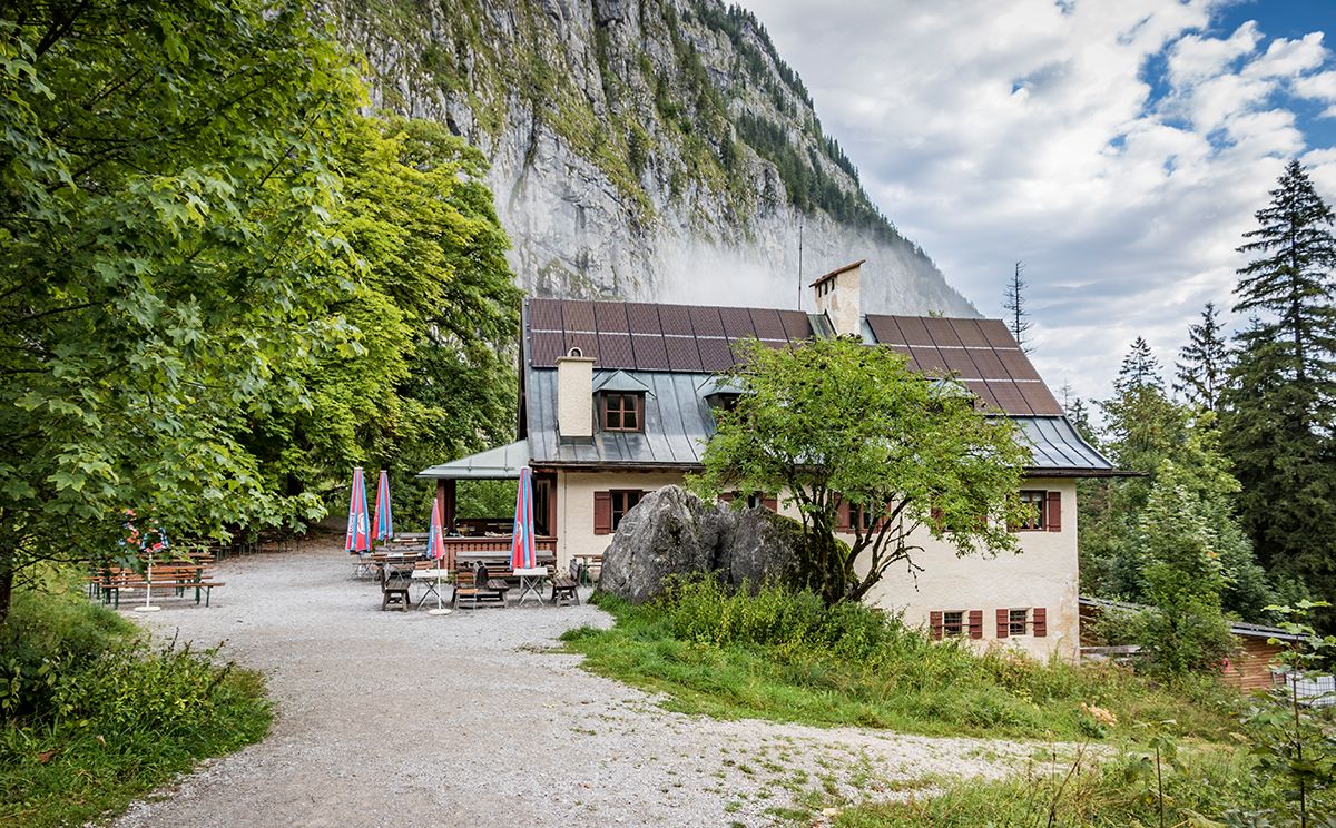 Das ehemalige Jagdschloss der Wittelsbacher liegt neben dem mächtigen Schuttstrom des Wimbachgries im gleichnamigen Tal und lässt sich ideal mit einer Begehung der Wimbachklamm kombinieren.