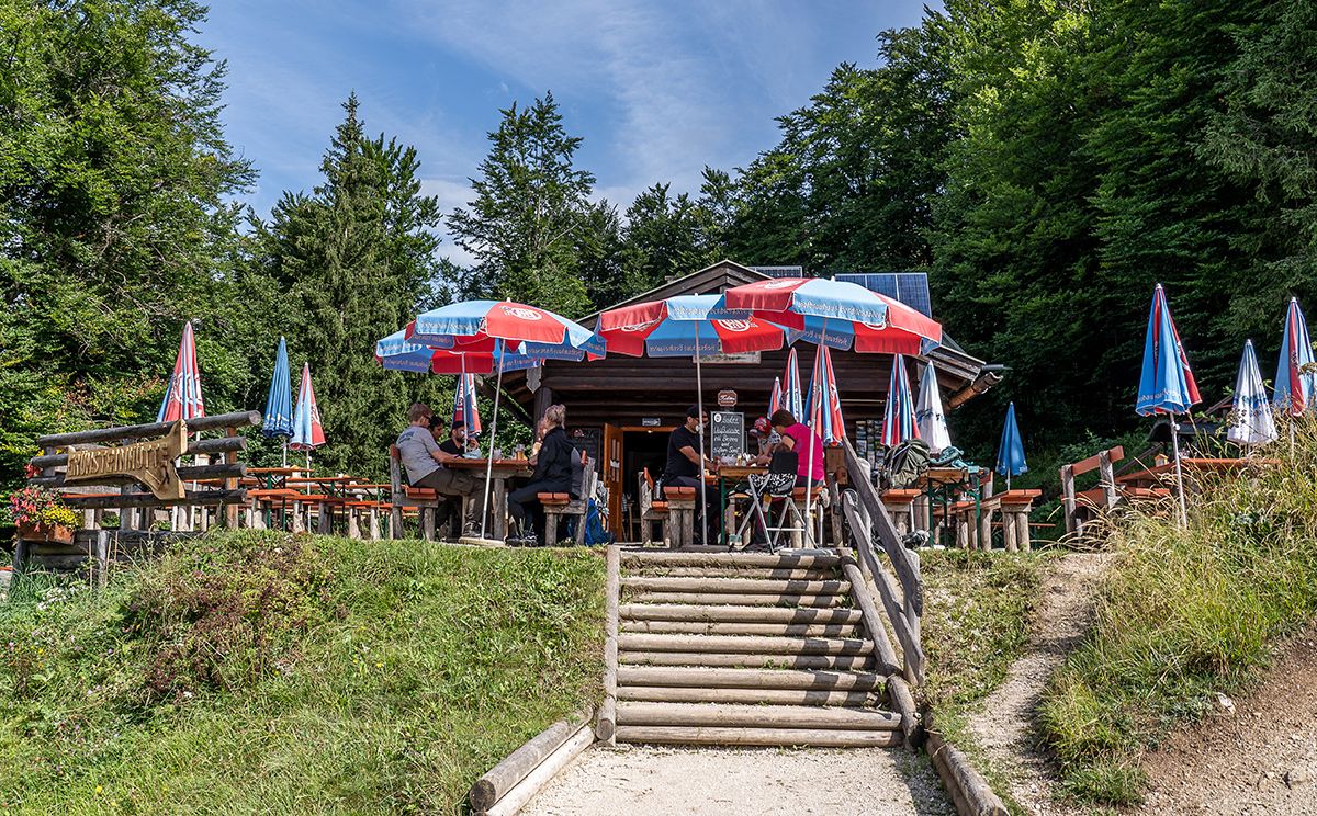 Ob draußen auf der sonnigen Terrasse oder drinnen in der urigen Stube: Die Grünsteinhütte bietet viele gemütliche Plätze für eine deftige Brotzeit oder eine süße Mehlspeise. Die Naschkatzen genießen den hausgemachten Kaiserschmarren oder ein gutes Stück Kuchen, dazu eine Tasse Kaffee oder eine Saftschorle. Und für die Herzhaften gibt es frisch gebratene Kaspressknödel oder ein deftiges Speckbrot. Und dazu eine Halbe Bier vom Hofbrauhaus Berchtesgaden.