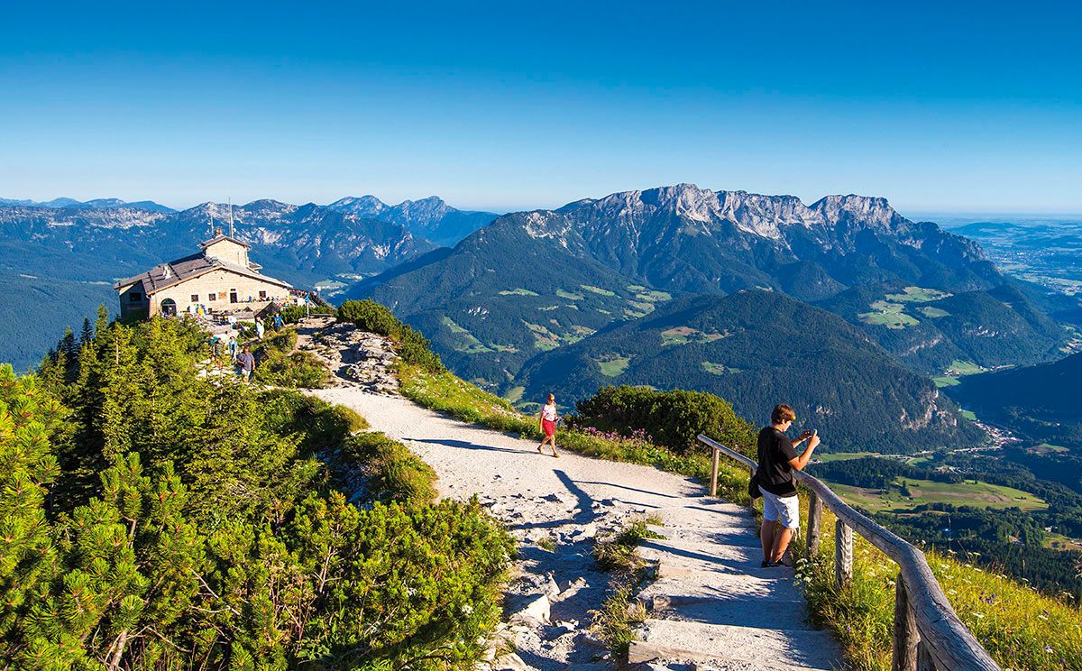 Historischer Aussichtspunkt hoch über Berchtesgaden: Vom Kehlsteinhaus aus eröffnet sich den Besuchern ein überwältigender Panoramablick von bis zu 200 Kilometern. Buchen Sie Ihre Tickets online! So geht es vor Ort schneller.