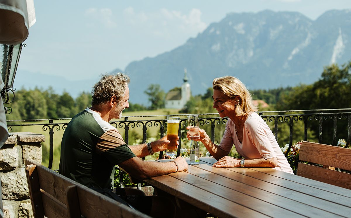 Bei schönem Wetter lockt die Terrasse der Neubichler Alm mit unvergeleichlichem Weitblick: über kräftige Wälder und sattgrüne Wiesen schweift der Blick hinüber zur Mozartstadt Salzburg. Und sollte das Wetter mal nicht so mitspielen: In der gemütlichen Gaststube oder im Wintergarten sind Sie vor Wind und Wetter geschützt und können den Ausblick durch große Fenster genießen. Der nahe Johannishögl ist durch den Pidinger Bienenweg mit der Neubichler Alm verbunden und eignet sich perfekt für einen Verdauungsspaziergang.