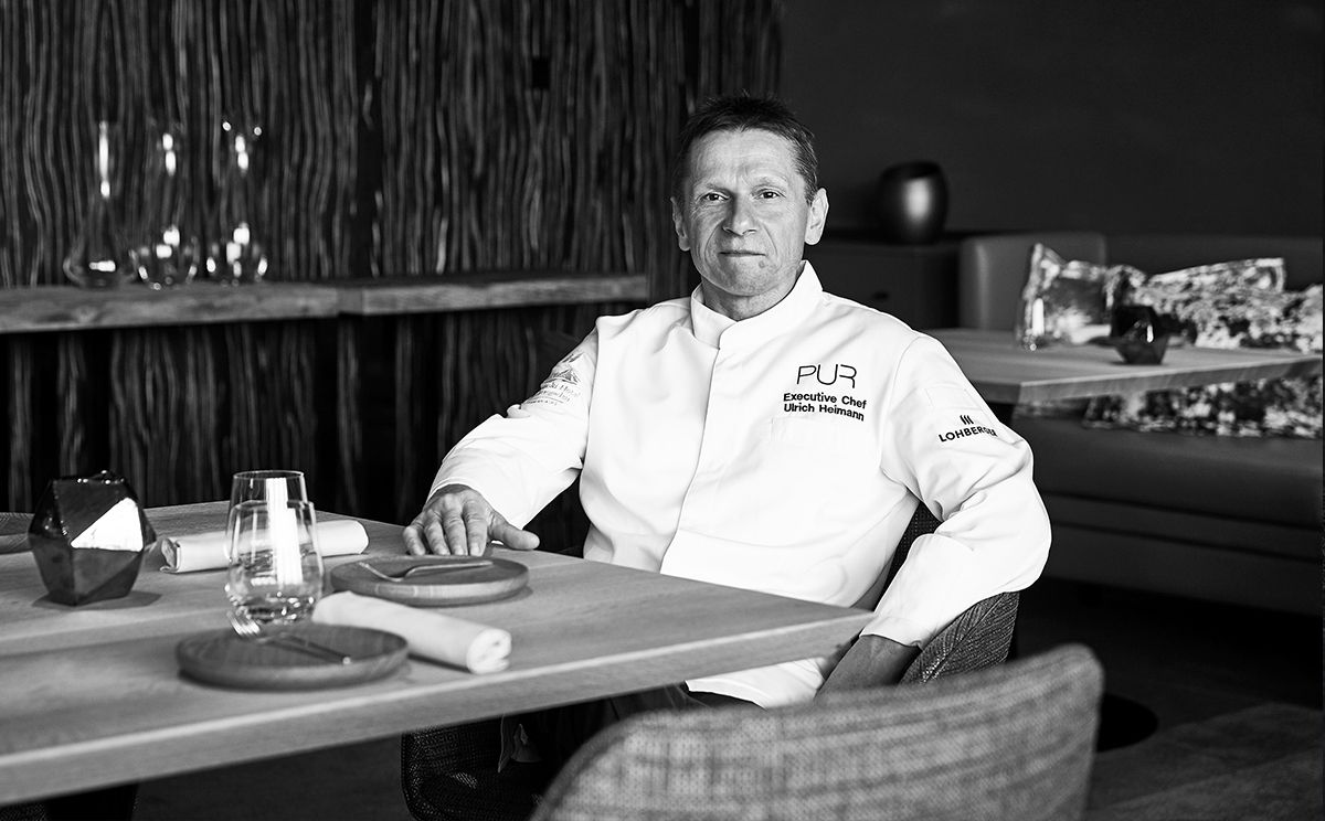Ulrich Heimann wuchs im Schwarzwald auf und legte dort auch das Fundament für seine Karriere. Heimann wechselte 1992 in den „Prinz Frederik Room“ in Hamburg – 1995 erkochte er dort seinen ersten Michelin Stern. Seit 2005 zeichnet der passionierte Bergsteiger für das jetzige PUR, ehemals Le Ciel, in Berchtesgaden verantwortlich. Für das Gourmet-Restaurant erhielt Heimann 2006 einen Stern, den er seitdem erfolgreich verteidigt. „Für mich steht PUR für pure Leidenschaft, pure Kochkunst und die Liebe zum Produkt. Ich bin stolz, ein solch tolles Restaurant führen zu dürfen und freue mich, das neue Design, den Raum und das Konzept zusammen mit meinem Team mit Leben zu füllen“, sagt Ulrich Heimann. 2024 erhält der leidenschaftliche Koch einen zweiten Michelin Stern.