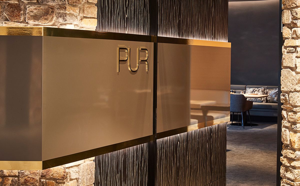 Das 2 Michelin-Sterne-Restaurant des Kempinski Hotel Berchtesgaden präsentiert sich seit Anfang 2020 in neuem Design – und mit neuem Namen: PUR. Der Name hält, was er verspricht: PUR bietet Fine Dining auf höchstem Niveau in entspannter Atmosphäre. Das Produkt ist der Star. Purer unverfälschter Geschmack, leicht, schmackhaft und überraschend – abseits dessen, was man kennt und erwartet, so präsentiert Chefkoch Ulrich Heimann seine neuen Kreationen. Gestalterisch bewegt sich das PUR zwischen schmeichelnder Zurückhaltung und atmosphärischer Gelassenheit. Ruhige Farben, aussagekräftige Materialien, deren sorgfältige Bearbeitung und eine ansprechende Lichtsituation unterstreichen die atmosphärische Architektur.