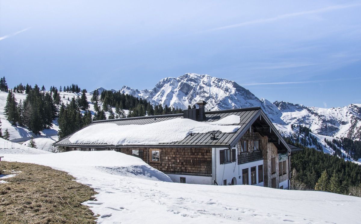 Die urige Rossfeld-Skihütte an der Rossfeld-Panoramastraße liegt im Sommer in einem sanften Wandergebiet und im Winter direkt neben dem Skigebiet am Rossfeld.