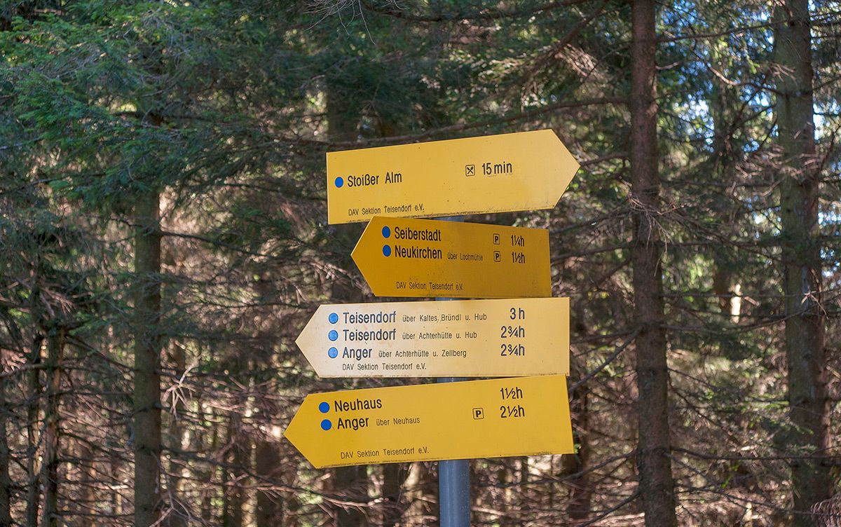 Es gibt viele Wege auf die Stoißer Alm, denn von allen Seiten führen gut hergerichtete Zustiege auf den freistehenden Teisenberg. Am bekanntsten ist der Weg von Anger auf die Stoißer Alm.
