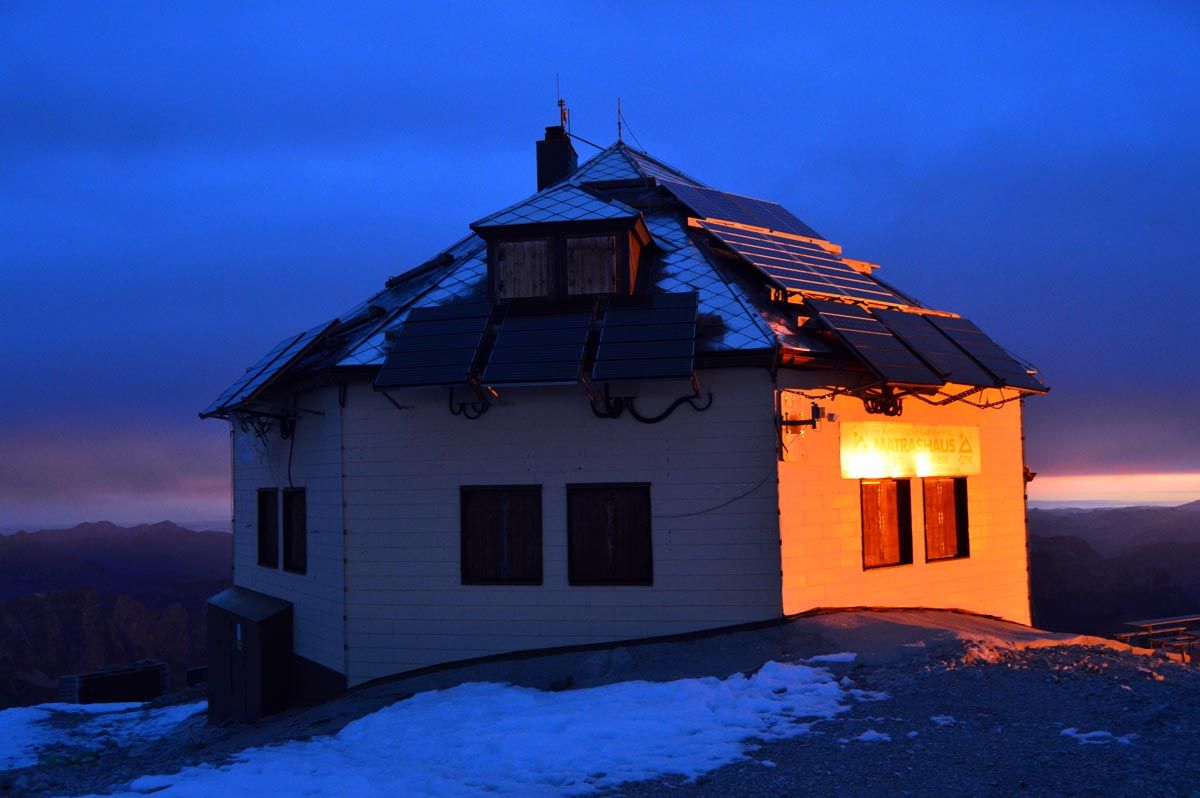 Eine Übernachtung in dem Matrashaus auf dem Gipfel des Hochkönigs, der in den Berchtesgadener Alpen alles überragt, ist ein unvergessliches Erlebnis. Exponiert und nur auf alpinen Steigen erreichbar, liegt das Matrashaus oberhalb des Plateaugletschers der Übergossenen Alm in einmaliger Lage.