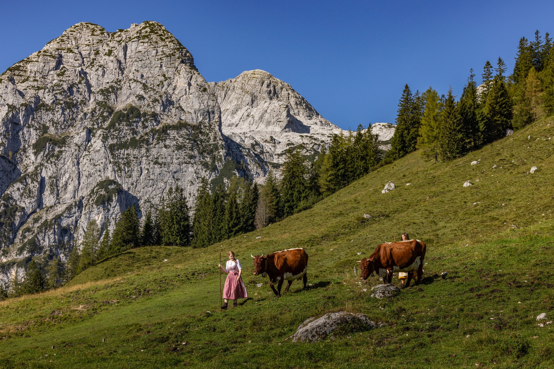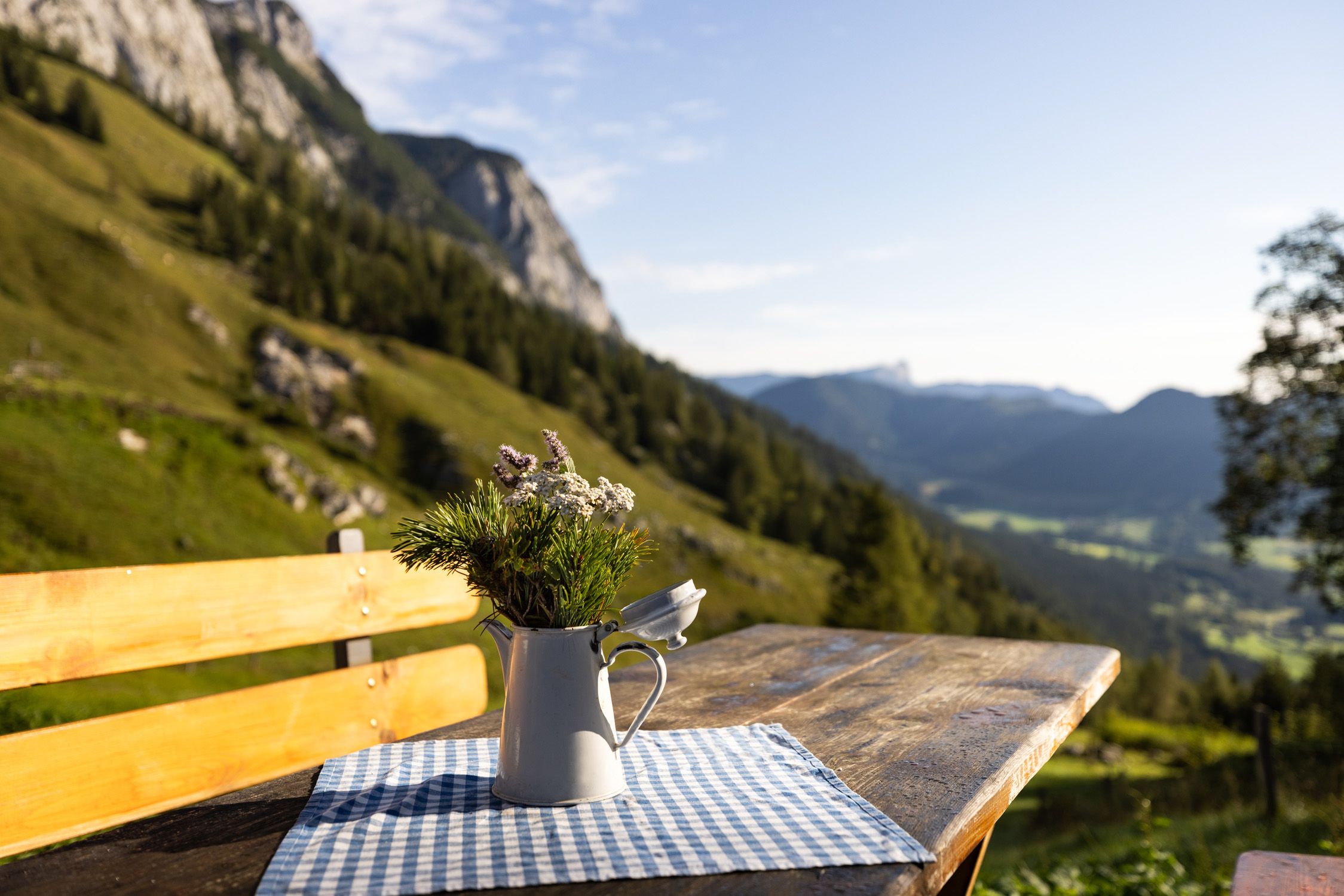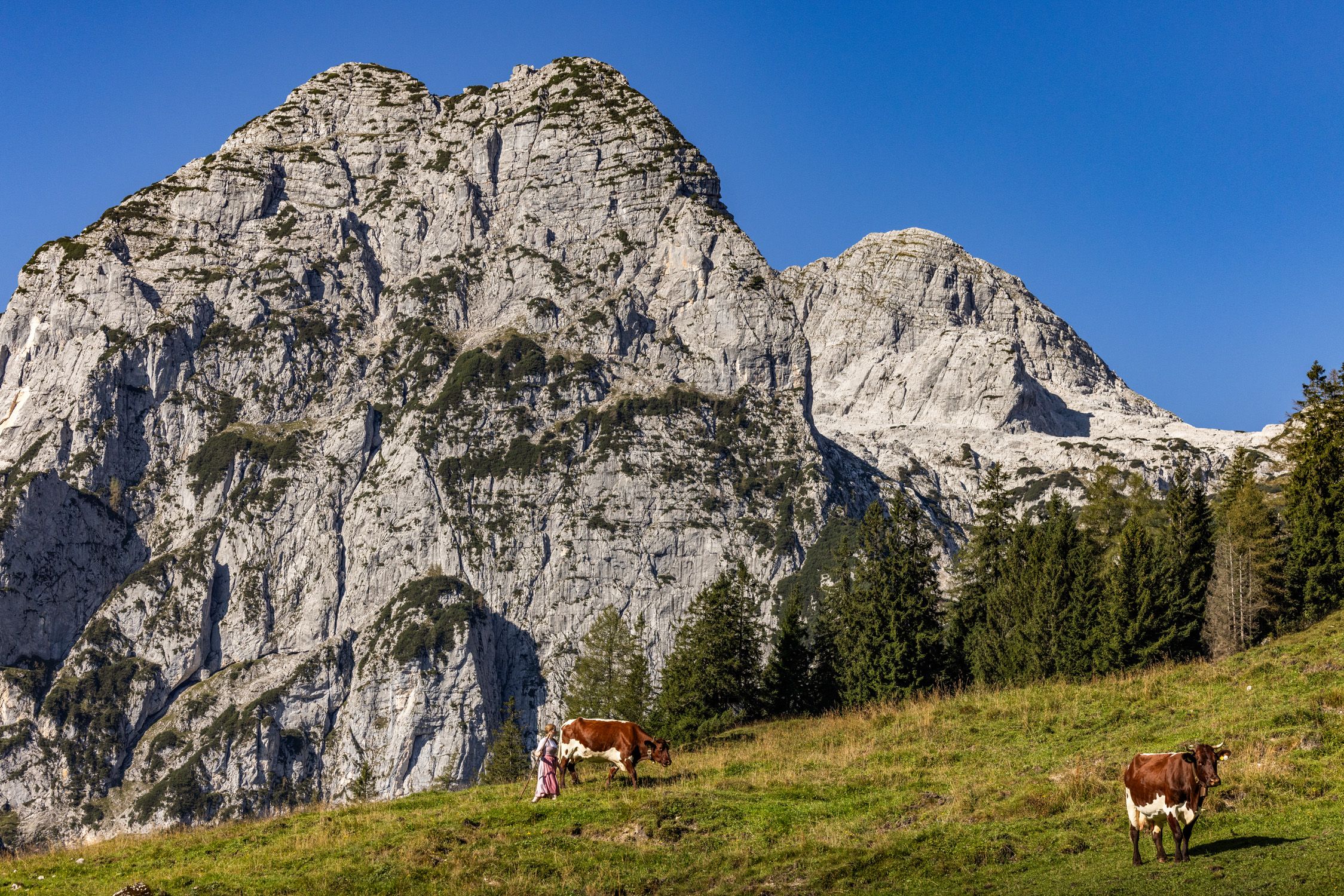 Im Klausbachtal im Nationalpark Berchtesgaden liegt die Halsalm. Durch ihre Lage oberhalb des Hintersees hat man von der Alm einen wunderbaren Blick auf den See und das Ramsauer Tal.