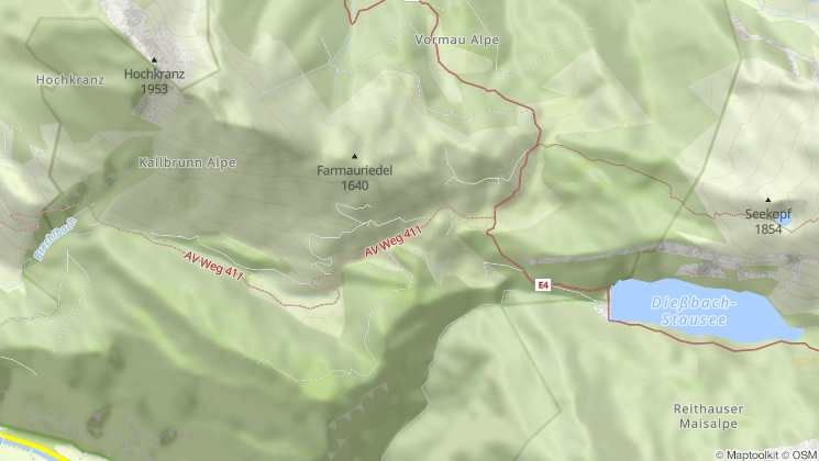 Unweit der Kallbrunnalm befindet sich in einem Nebental der Dießbachstausee. Dieser entstand 1961 durch die Aufstauung des Dießbaches. Die ursprünglich an dieser Stelle gelegne Dießbachalm wurde überschwemmt. Vom Dießbachstausee führt ein bei Bergsteigern beliebter Aufstieg zum Ingolstädter Haus im Steinernen Meer.