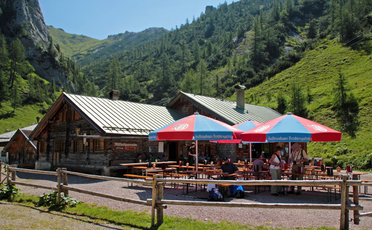Die Mitterkaseralm unterhalb des Jenners wird im Sommer von Wanderern und im Winter von Tourengehern und Rodlern zur gemütlichen Einkehr aufgesucht.