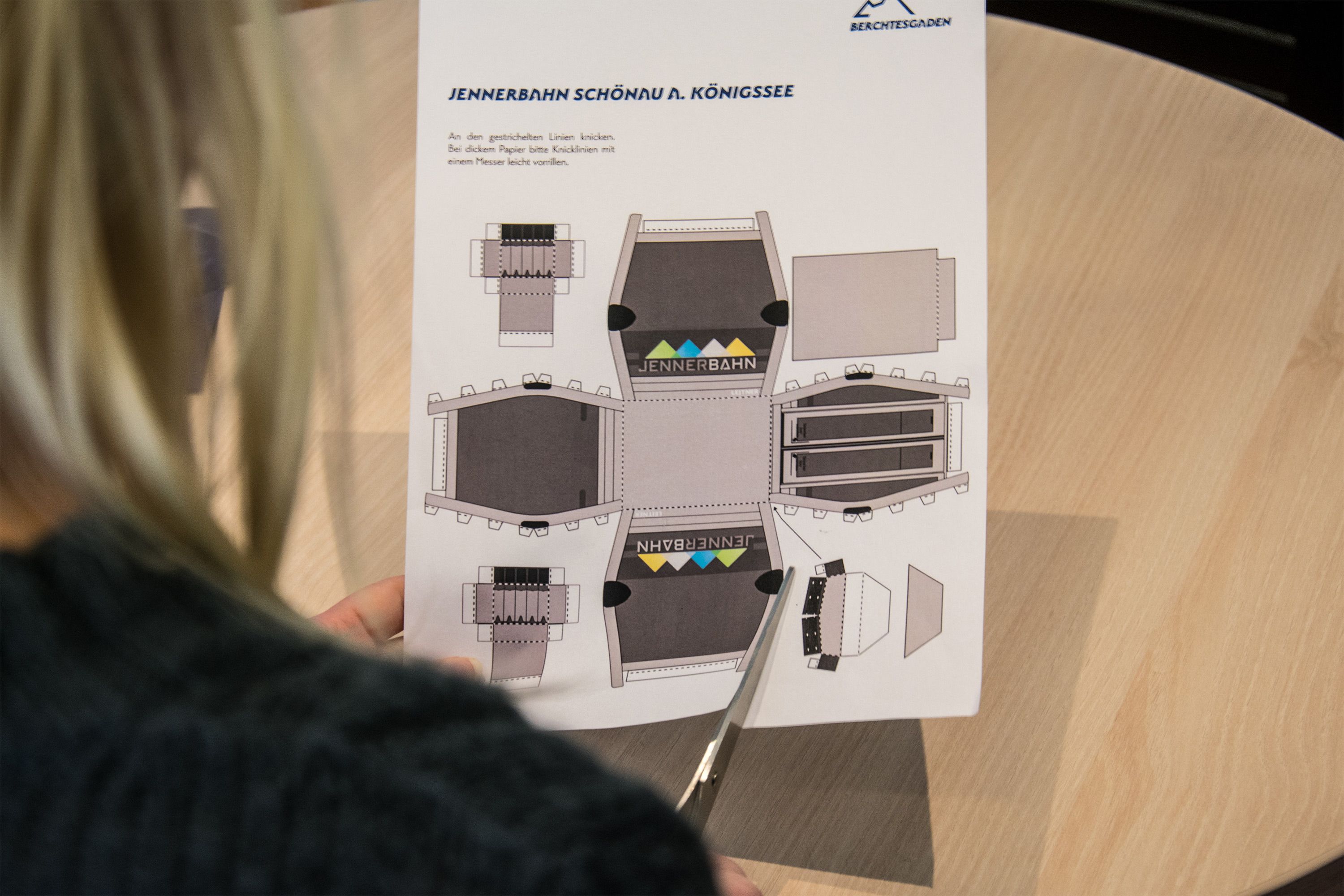 Bastle deine Jennerbahn GondelSeit Dezember 2019 fährt die neue Jennerbahn vom Königssee bis zur Bergstation auf 1.800 Metern Höhe. Herzstück der Jennerbahn sind ihre komfortablen 10er Gondeln. Mit unserem Bastelbogen könnt ihr ein maßstabgetreues Modell einer solchen Jennerbahn Gondel nachbauen.
