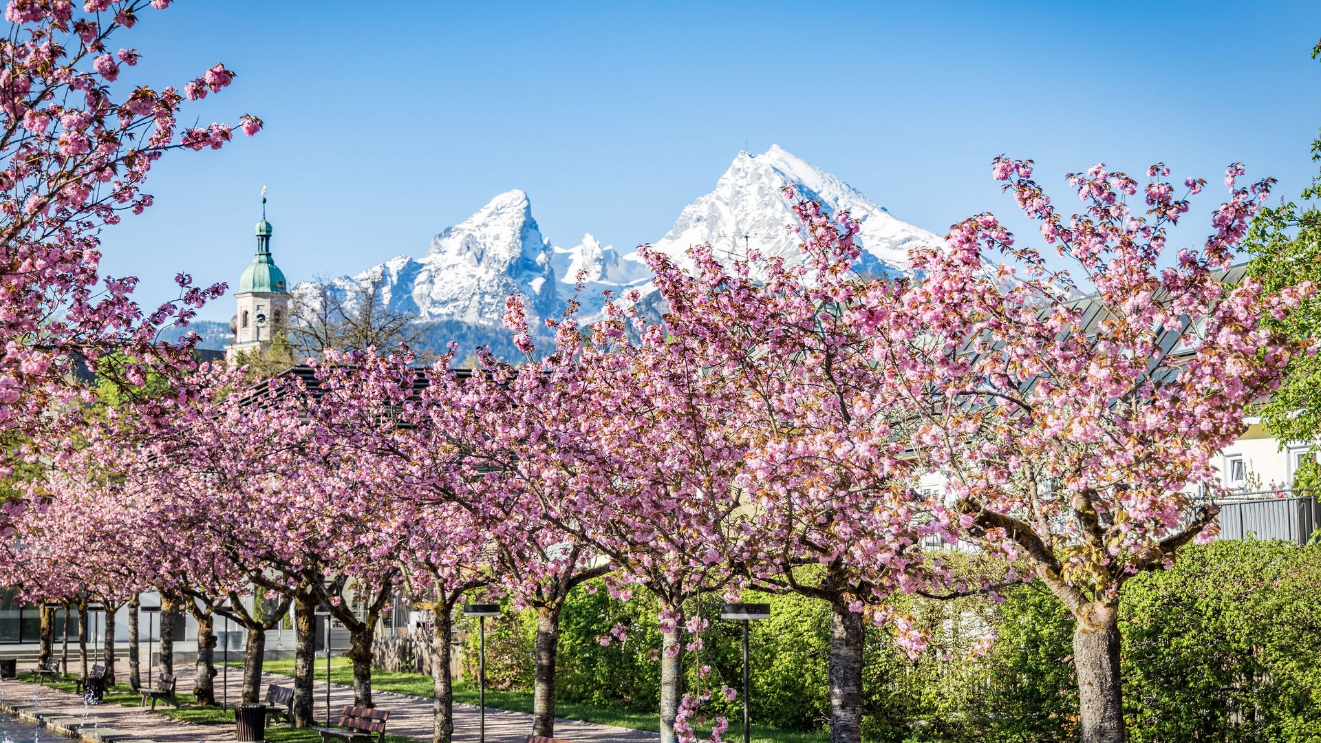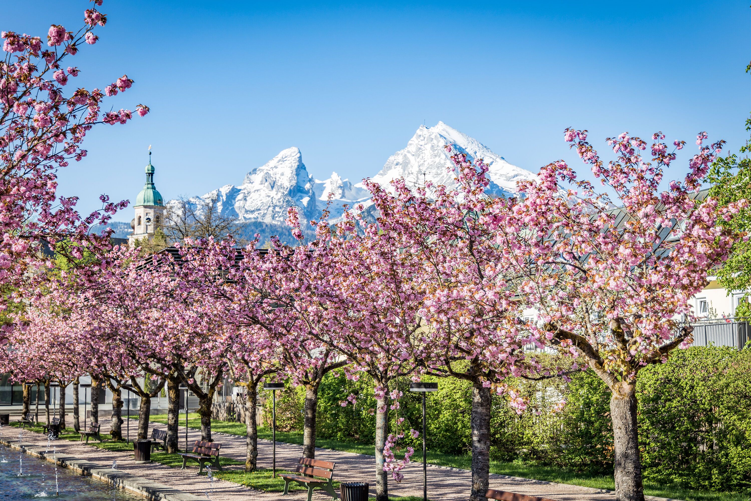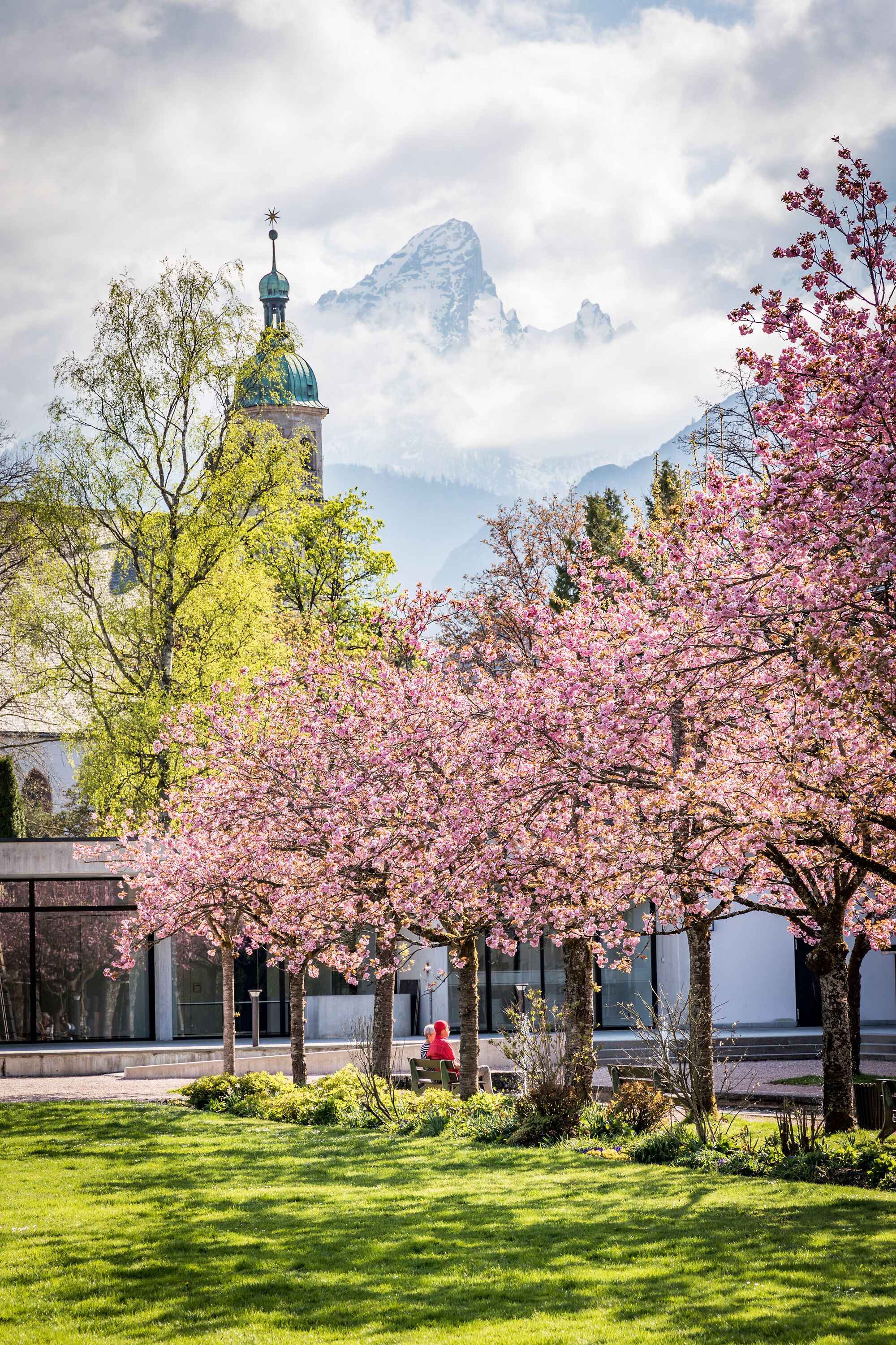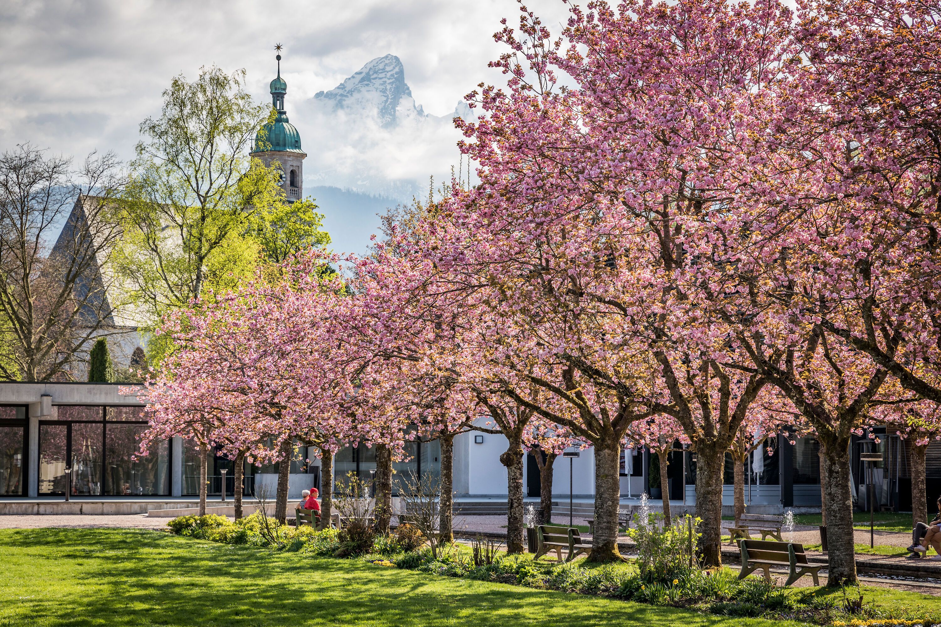 Komm in den Kurgarten Berchtesgaden und erlebe Hanami vor der majestätischen Kulisse des Watzmanns – ein außergewöhnliches Frühlingserlebnis, das Du so schnell nicht vergisst!