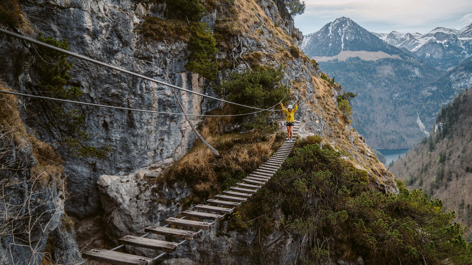 Steiganlagen machen Dir extremes Felsgelände und alpine Räume zugänglich, die ohne Sicherungseinrichtungen nur sehr erfahrenen Kletterern vorbehalten wären. Wichtig: Eine entsprechende Klettersteig-Erfahrung ist dafür zwingend erforderlich - das nötige Wissen bekommst Du in den Klettersteigschulen.