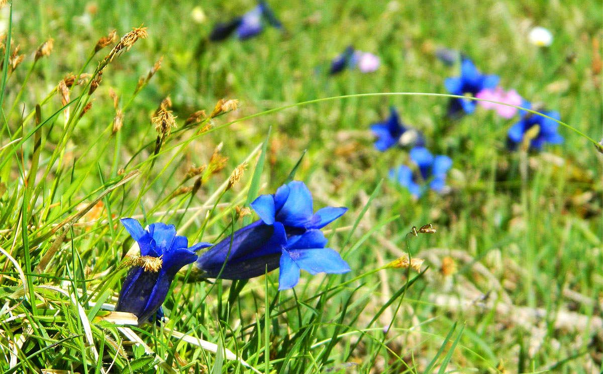Der Echte AlpenenzianDer echte Alpenenzian, auch Clusius- oder Kalk-Glocken-Enzian, zeichnet sich durch seine tiefblaue Farbe und einen extrem kurzen Stengel aus. Er ist nur eine von vielen Enzian-Arten, aber die bekannteste. Im Gegensatz zum weitverbreiteten Glauben, wird der Enzian-Schnaps nicht aus diesem blauen Enzian gewonnen, sondern aus dem ungarischen oder pannonnischen Enzian.
