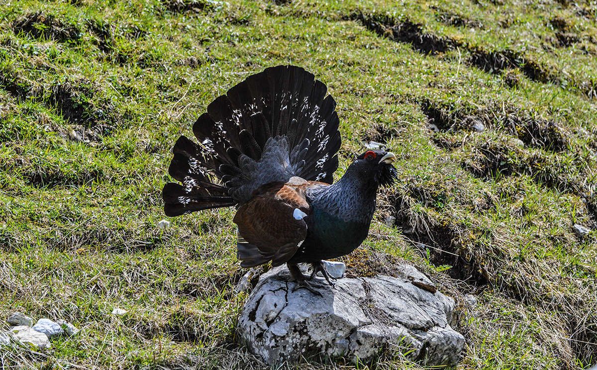 Die Population der zur Familie der Raufußhühner (Tetraonidae) gehörenden Auerhühner ist in Mitteleuropa stark gefährdet und steht auch in Deutschland in der Kategorie der vom Aussterben bedrohten Vogelarten auf der Roten Liste. Dementsprechend ist der Nationalpark Berchtesgaden besonders stolz darauf, dass einige Auerhühner die heimischen Wälder besiedelt haben. Ein Grund für die Seltenheit der Auerhühner ist ihr hoher Lebensraumanspruch. Sie bevorzugen naturnahe und ruhige Nadel- und Mischwälder. Dort muss die Möglichkeit für Staubbäder und zur Aufnahme von Magensteinen gegeben sein. Auch das Vorkommen von Wasserstellen, Ameisen und einer geschlossene Krautschicht ist für die Auerhühner existenziell. Auf Störungen durch Wanderer, Mountainbiker, Rodler, Schneeschuh- und Skitourengeher, besonders jedoch auf freilaufende Hunde reagiert das sensible Auerhuhn mit Stress. Insbesondere im kräftezehrenden Winter kostet jedes fluchtartige Auffliegen wertvolle Energie und gefährdet so das Überleben der Tiere.