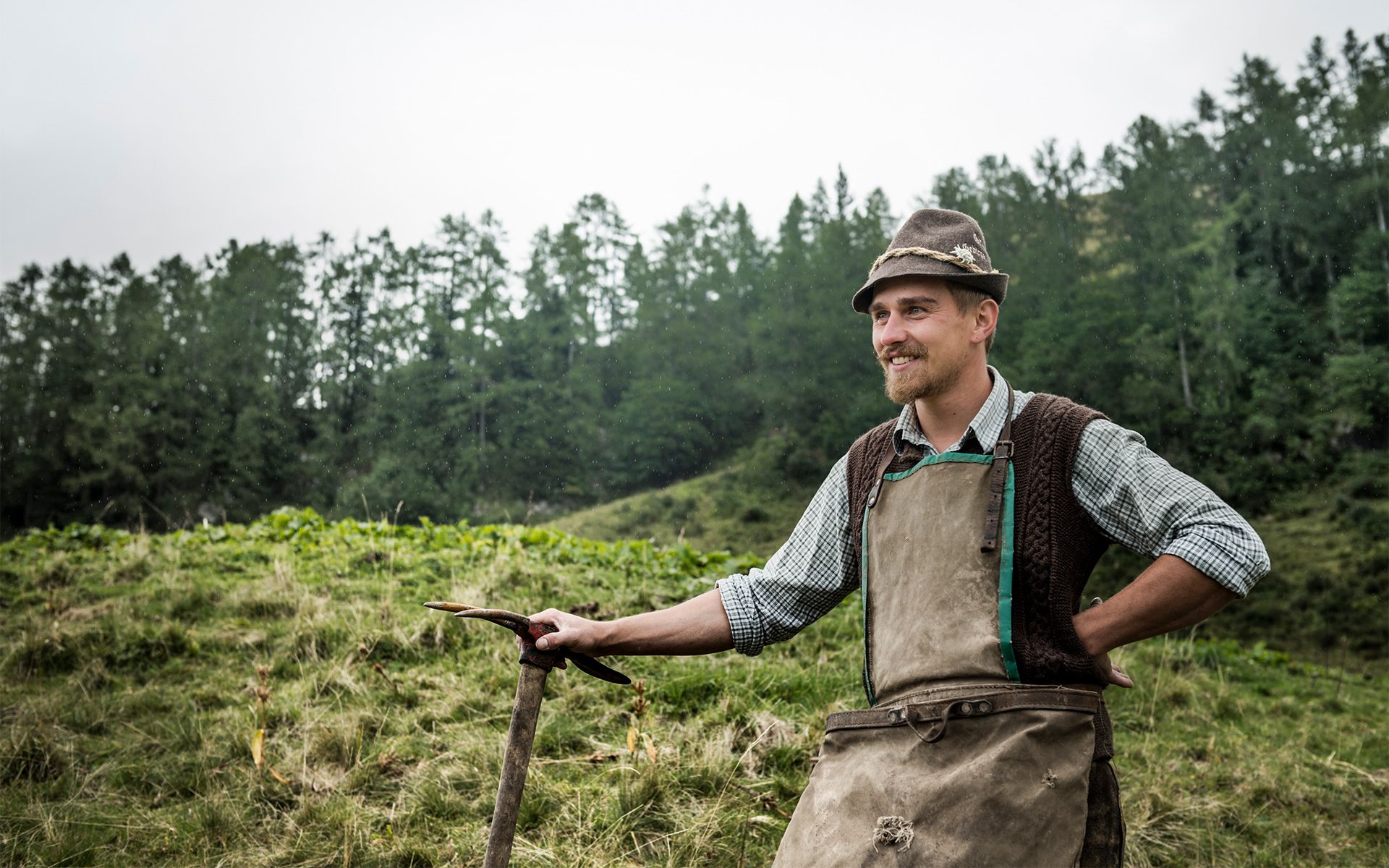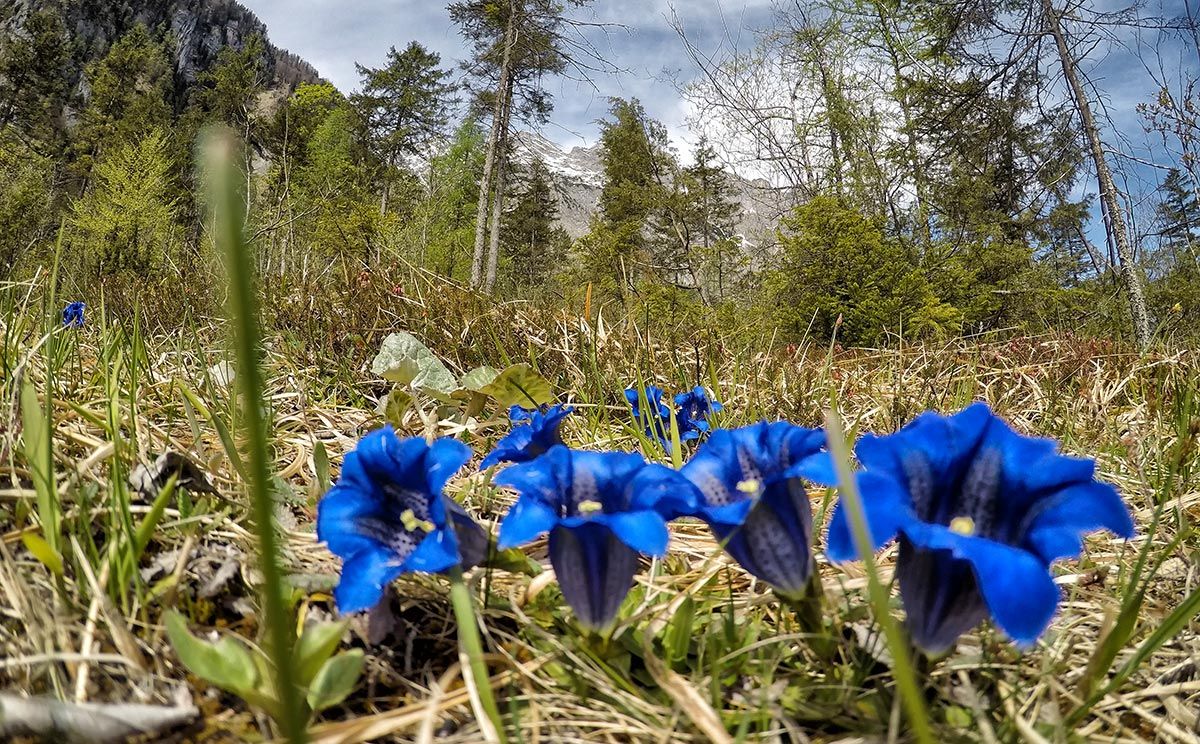 Das Wurzengrabgebiet der Enzianbrennerei Grassl beginnt in einer Höhe von 1.000 Metern und erstreckt sich vom Roßfeld über den gesamten Nationalpark bis zur Kallbrunnalm im Pinzgau (Salzburger Land). Wie einst ernten die Wurzengraber die bis zu einem Meter langen und bis zu zwei Kilo schweren Wurzeln des violett blühenden Enzians mit Spezialhacken von Hand. Die Männer graben stets nur den oberen Wurzelstock aus und verschließen die Grasnarbe sorgfältig. So bleibt der Pflanzenbestand erhalten, und die Enzianblüten zieren auch im nächsten Jahr die Almwiesen mit ihrer Pracht. Dieselbe Pflanze wird erst wieder nach sieben bis 15 Jahren geerntet. Eine mühsame Arbeit - denn die Wurzengraber bringen die 50 Kilo schweren Säcke teilweise noch wie einst mit Kopfkraxen zur Brennhütte, wo sie vom Bergbrenner gehackt, eingemaischt und gebrannt werden. Fünf Brennhütten gehören zur Enzianbrennerei Grassl, drei davon stehen im Berchtesgadener Nationalpark - auf der Priesbergalm am Jenner, auf der Wasseralm am Fuße der Teufelshörner und am für seine Tiefsttemperaturen mit bis zu minus 45,9° C bekannten Funtensee, wo der edelste aller Enzianbrände entsteht. Und so pendelt der Bergbrenner von Hütte zu Hütte, wo er stets einige Wochen verbleibt. Bei aller Anstrengung am Tage - den Abend lässt er mit seinen Wurzengrabern jedoch immer in zünftiger Hüttenstimmung ausklingen.