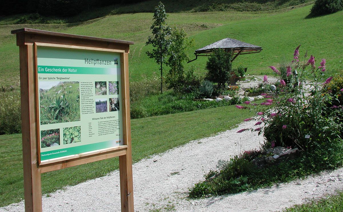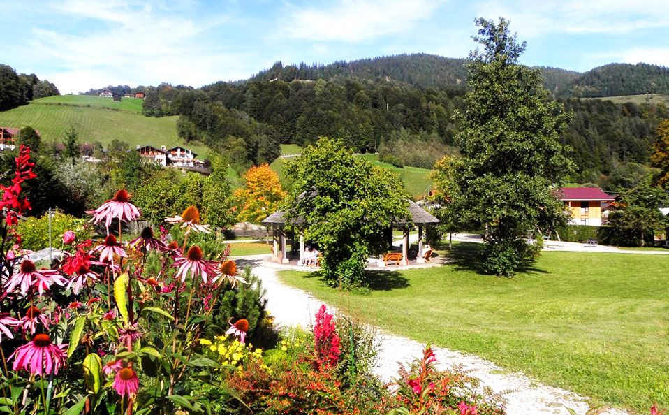 Ein Platz der Erholung und der Begegnung für Einheimische und Gäste: Der Bergkurgarten im Herzen des Bergsteigerdorfes Ramsau.