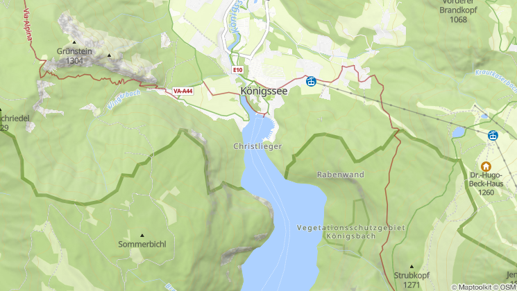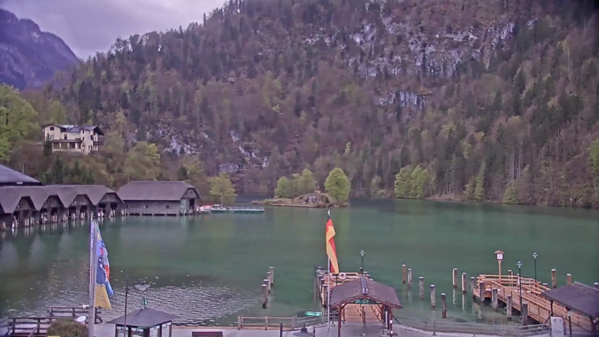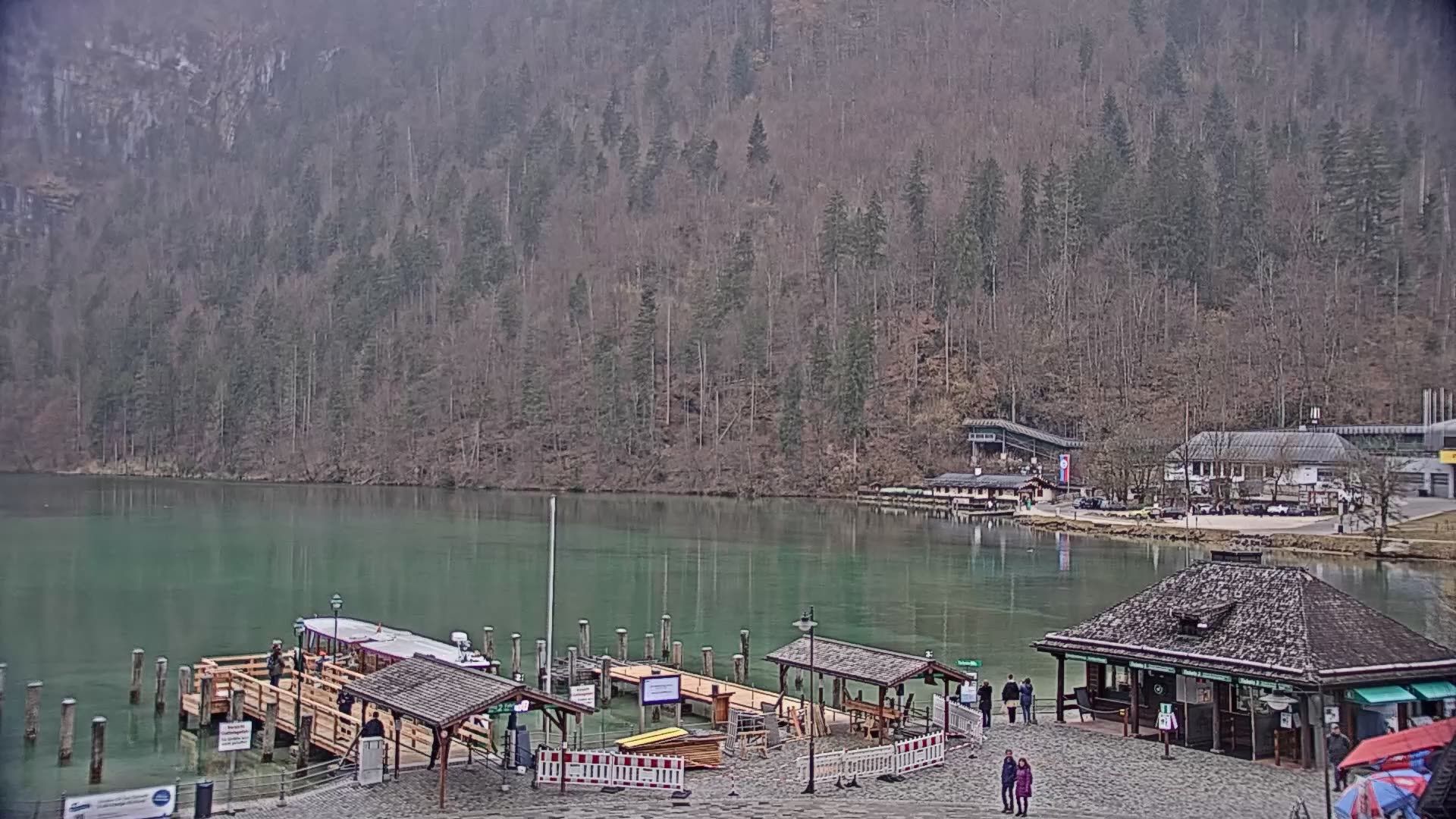 Von der Insel hat man einen schönen Überblick zur Seelände mit dem denkmalgeschützten Hotel Schiffmeister und den Bootswerften der Bayerischen Seenschifffahrt auf der rechten Seite des Sees. Hier werden die Elektroboote nicht nur gewartet und ihre Akkus wieder aufgeladen, sondern auch neue Schiffe der Königsseeschifffahrt komplett neu gebaut.
