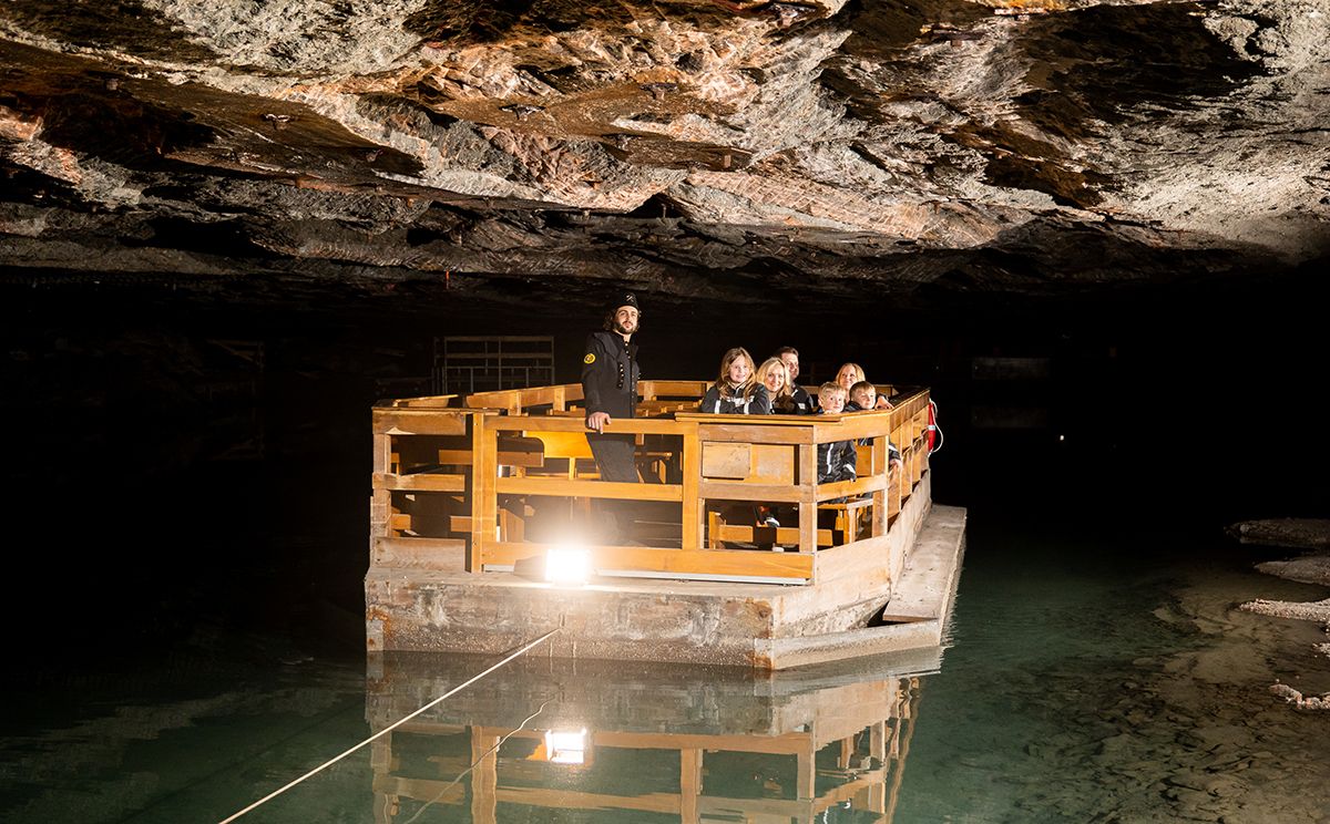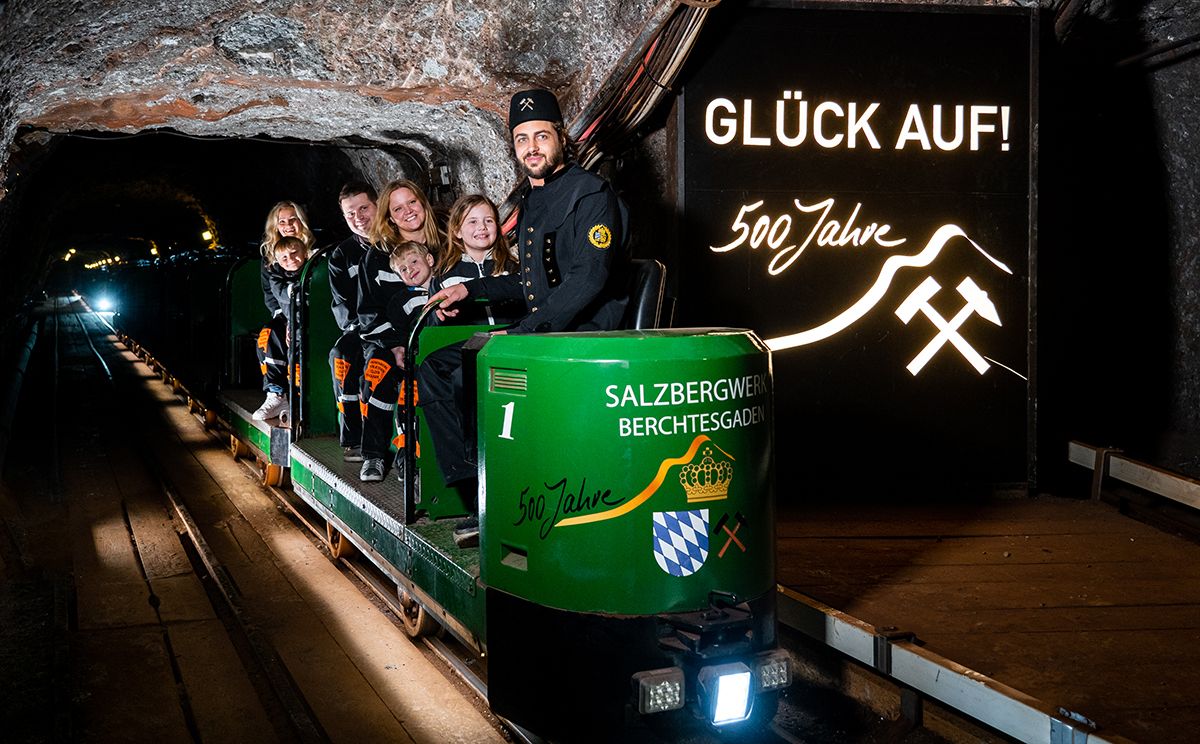 Im Salzbergwerk Berchtesgaden wird auch heute noch Salz abgebaut, wie eh und je erfolgt der Abbau in sogenannten Sinkwerken. Das genaue Verfahren des Salzabbaus erfahren die Besucher des Salzbergwerkes bei der Einfahrt in das Bergwerk. Eine insgesamt 1.400 Meter lange Strecke wird mit der Besucherbahn befahren und bringt die Bergwerksbesucher in das Innere des Salzberges. Wer mitfahren will, wird natürlich mit den typischen Overalls eingekleidet. Neben der Bergmannsrutsche ist auch die Fahrt über den unterirdischen Salzsee ein Highlight der Tour untertage.