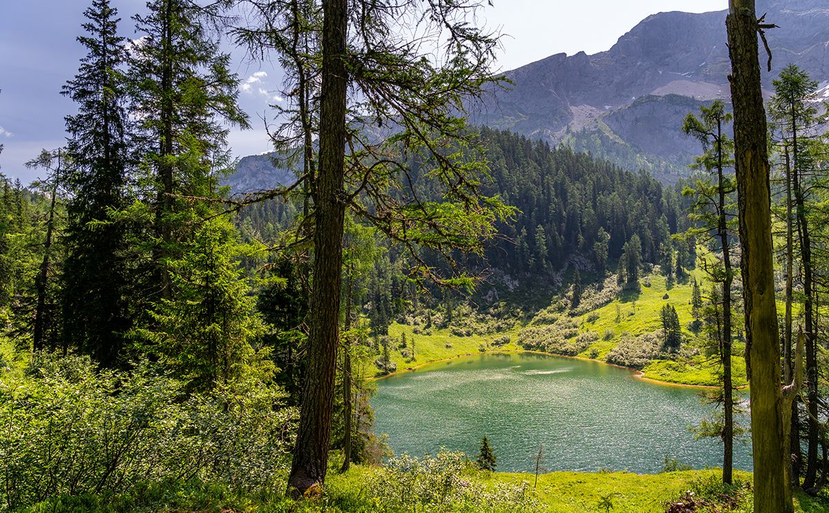 Mit knapp 4 Hektar Fläche ist der Grünsee größer als sein bekannter Nachbar Funtensee. Durch seine abgeschiedene Lage ist der smaragdgrün schimmernde See dennoch ein wenig besuchtes Kleinod geblieben.