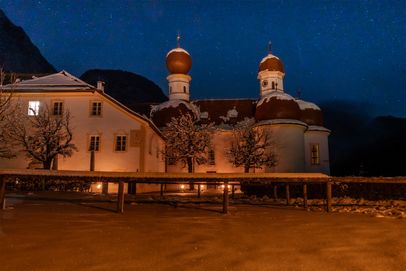 Die Besonderheit des Königssees ist, dass man diesen nur mit dem Schiff besichtigen kann. Die steilen Felswände fallen bis ans Ufer hinab, so dass es auch keine Straßen, Fuß- oder Radwege rund um den See gibt. Es gibt viel zu sehen und zu erleben: Die 1. Haltestelle St. Bartholomä erreicht das Boot nach ca. 35 Minuten, hier lohnt sich ein Besuch der weltbekannten barocken Wallfahrtskirche und eine gemütliche Einkehr in der historischen Gaststätte. Frisch geräucherte Fische gibt`s gleich nebenan beim Fischer vom Königssee. Ein leichter, abwechslungsreicher Rundwanderweg führt von hier in ca. 45 Minuten durch den Wald und über den Eisbach zurück zur Anlegestelle. Je nach Jahreszeit bietet sich von der Haltestelle St. Bartholomä eine Wanderung zur sogenannten Eiskapelle an, kein Gebäude, sondern das permanente Eisfeld am Fuße der Watzmann-Ostwand. Die Gehzeit bis zur Eiskapelle beträgt ca. 2 1/2 Stunden hin und zurück.