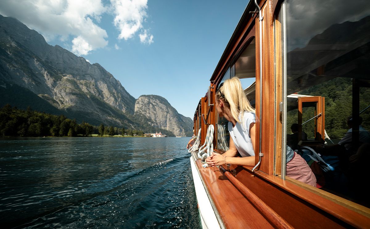 Die mächtigen Felsen der Berchtesgadener Alpen fallen fast senkrecht zum Ufer des Königssees hinab, der an seiner tiefsten Stelle 192 Meter misst. Wer die beeindruckende Naturkulisse rund um den bekanntesten Gebirgssee Bayerns entdecken möchte, muss das Boot nehmen – und wird das Echo hören.