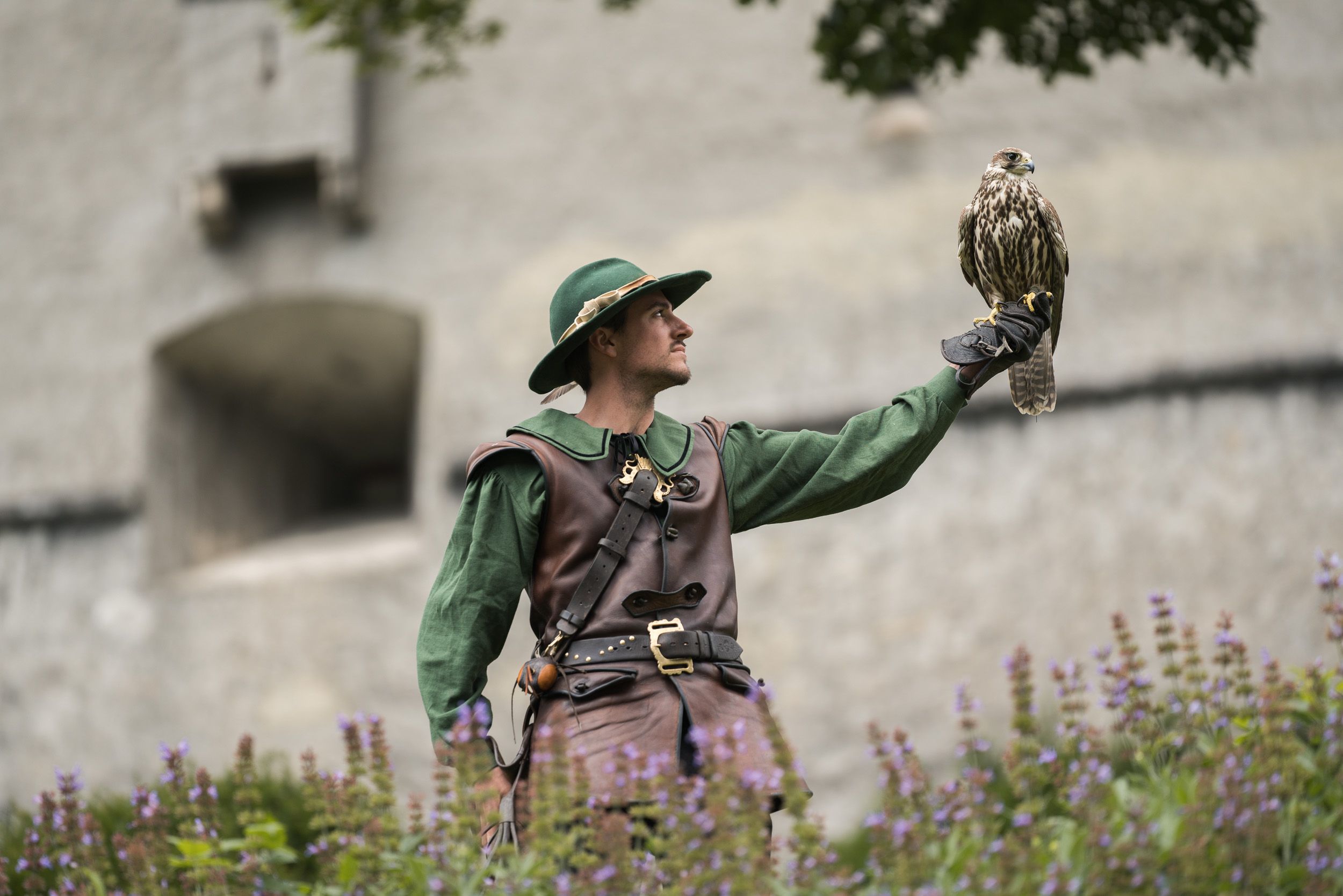 Größter Beliebtheit erfreuen sich auch die Flugvorführungen des historischen Landesfalkenhofes, die auf der Burg jeden Tag zweimal (im Juli und August sogar dreimal) stattfinden. Menschen aus aller Welt besuchen die Burg, um die spektakulären Flugmanöver von Falke, Adler, Bussard und Co. aus nächster Nähe zu betrachten. Die ausgebildeten Falkner und das Falknereimuseum bieten Einblicke in ein uraltes Handwerk, das heute nur mehr an wenigen Orten authentisch gelebt wird.