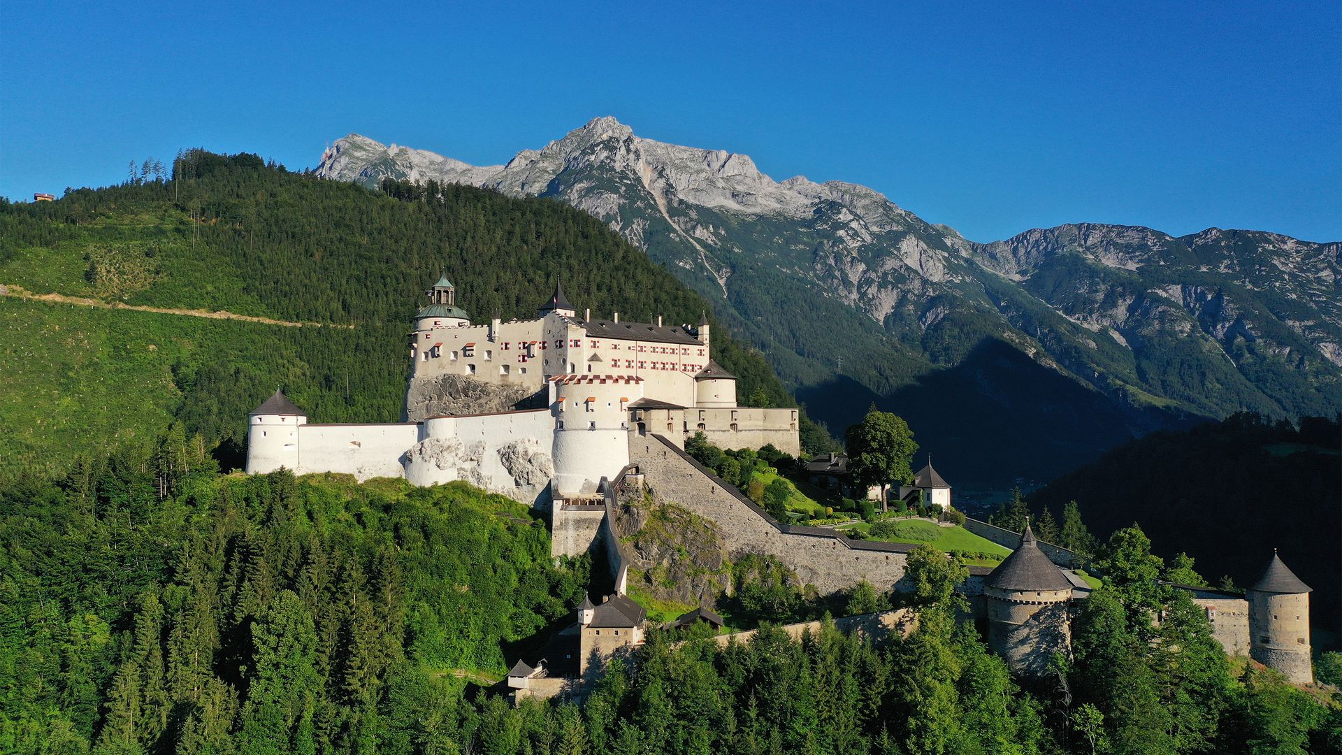 Majestätisch thront die Burg Hohenwerfen auf einem Felsen hoch über dem Salzburger Salzachtal. Um ihre Türme kreisen Greifvögel und wer die mächtigen Mauern durchschreitet, betritt eine andere Welt. Hier erlebst Du Geschichte vom Mittelalter bis in die Neuzeit mit allen Sinnen. Kein Wunder, dass die Erlebnisburg zu Salzburgs beliebtesten Familienausflugszielen zählt!