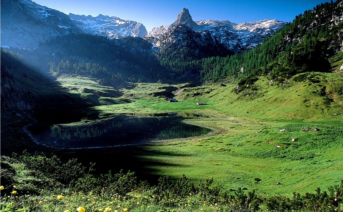 Als kältester Ort Deutschlands hat sich der Funtensee einen Namen gemacht. Aber keine Angst, der einmalig im Steinernen Meer gelegene Bergsee zeigt sich in den Sommermonaten als herzerwärmendes Wanderziel. Das Kärlinger Haus liegt direkt über dem Seeufer.