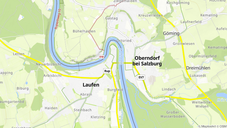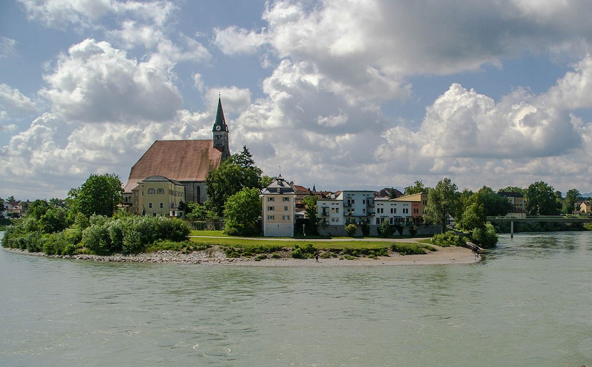 Die historische Altstadt von Laufen im Rupertiwinkel ist ein beeindruckendes Juwel. Ihr denkmalgeschützter Charakter, erbaut im Inn-Salzach Stil, der oft als Venezianischer Baustil bezeichnet wird, bildet einen eindrucksvollen Kontrast zu den Bergen der Berchtesgadener Alpen am Horizont. Der Inn-Salzach Baustil ist typisch für Altstädte in der Region von Inn und Salzach. Mehrere Häuser bilden mit ihren Scheinfassaden vor dem eigentlichen Dach ein geschlossenes Ensemble. Die Bürgerhäuser treten nicht als Einzelbauten hervor, sondern bilden Häuserzeilen und breite, geschlossen wirkende Marktstraßen und große Plätze. Das hervorstechende Merkmal ist die nach oben gezogene Häuserfront, die meistens das Dach, von der Straße aus betrachtet, versteckt. Dieser Baustil wurde nach einigen verheerenden Feuersbrünsten in dieser Gegend im 16. und 17. Jahrhundert eingeführt. Die Altstadt Laufens verdankt ihre Einzigartigkeit der Lage in der Salzachschleife und ist mit der auf österreichischer Seite gelegenen Stadt Oberndorf durch die Länderbrücke im Jugendstil und den Europasteg verbunden. Wahrzeichen der Stadt ist die Stiftskirche Mariä Himmelfahrt, die älteste gotische Hallenkirche Süddeutschlands, deren kreuzgangähnlicher Bogengang die Grabsteine des wohlhabenden Bürgertums und Adels der alten Schiffer- und Handelsstadt beherbergt. Ein Spaziergang durch Laufen ist wie eine Reise in die Vergangenheit, die die reiche Geschichte und Kultur dieser einzigartigen Stadt zum Leben erweckt.