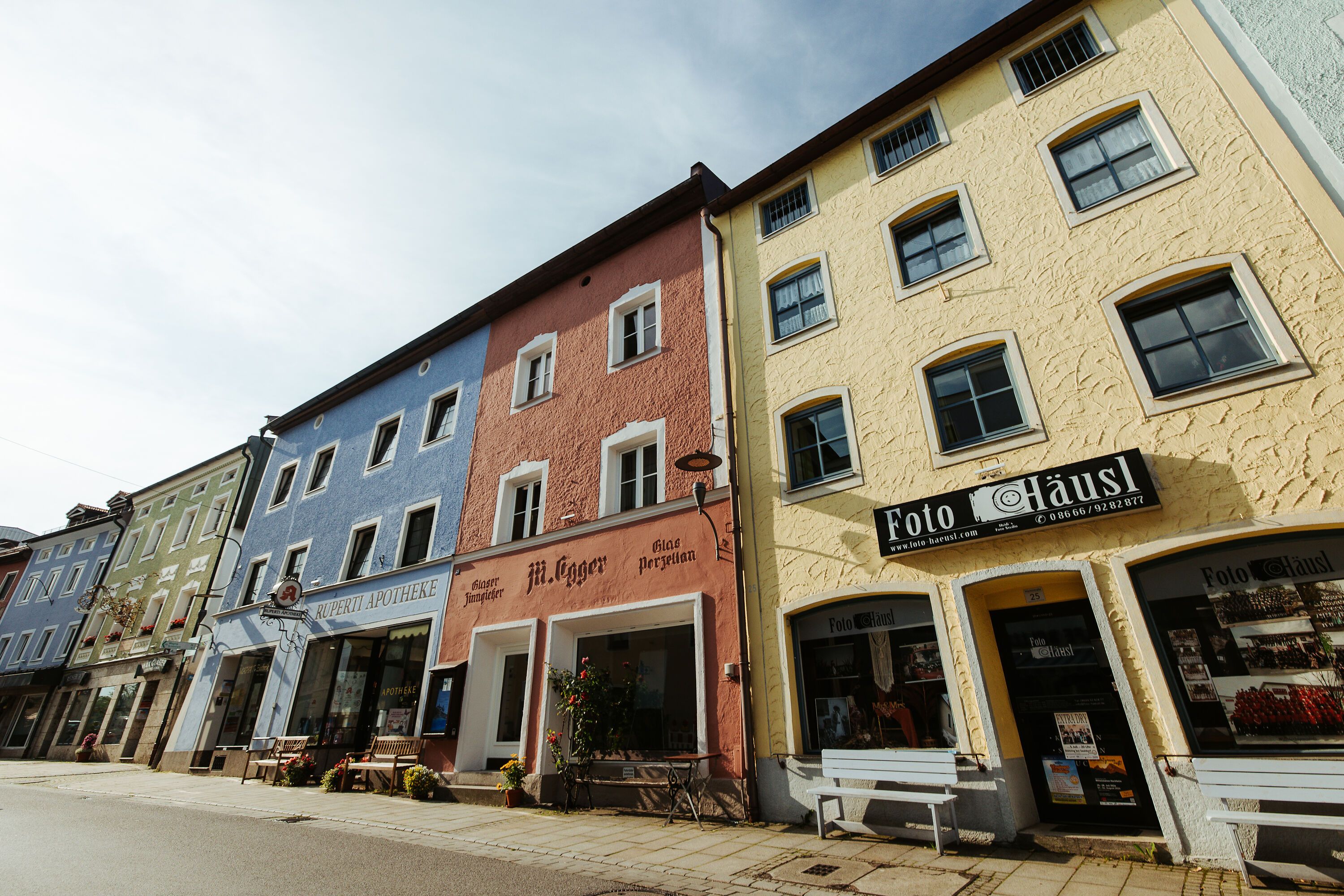 Italienisches Flair in Oberbayern? Die historische Marktstraße im Inn-Salzach Stil in Teisendorf lädt zum Flanieren und Einkaufen ein. Alteingesessene Fachgeschäfte, viele Lokale und Gaststätten sowie moderne Boutiquen wechseln sich mit Pubs ab.