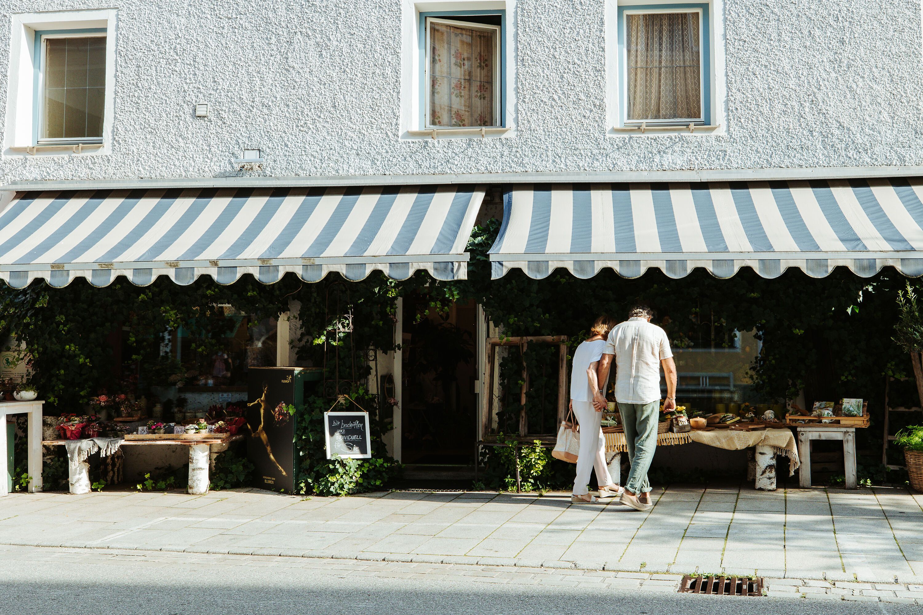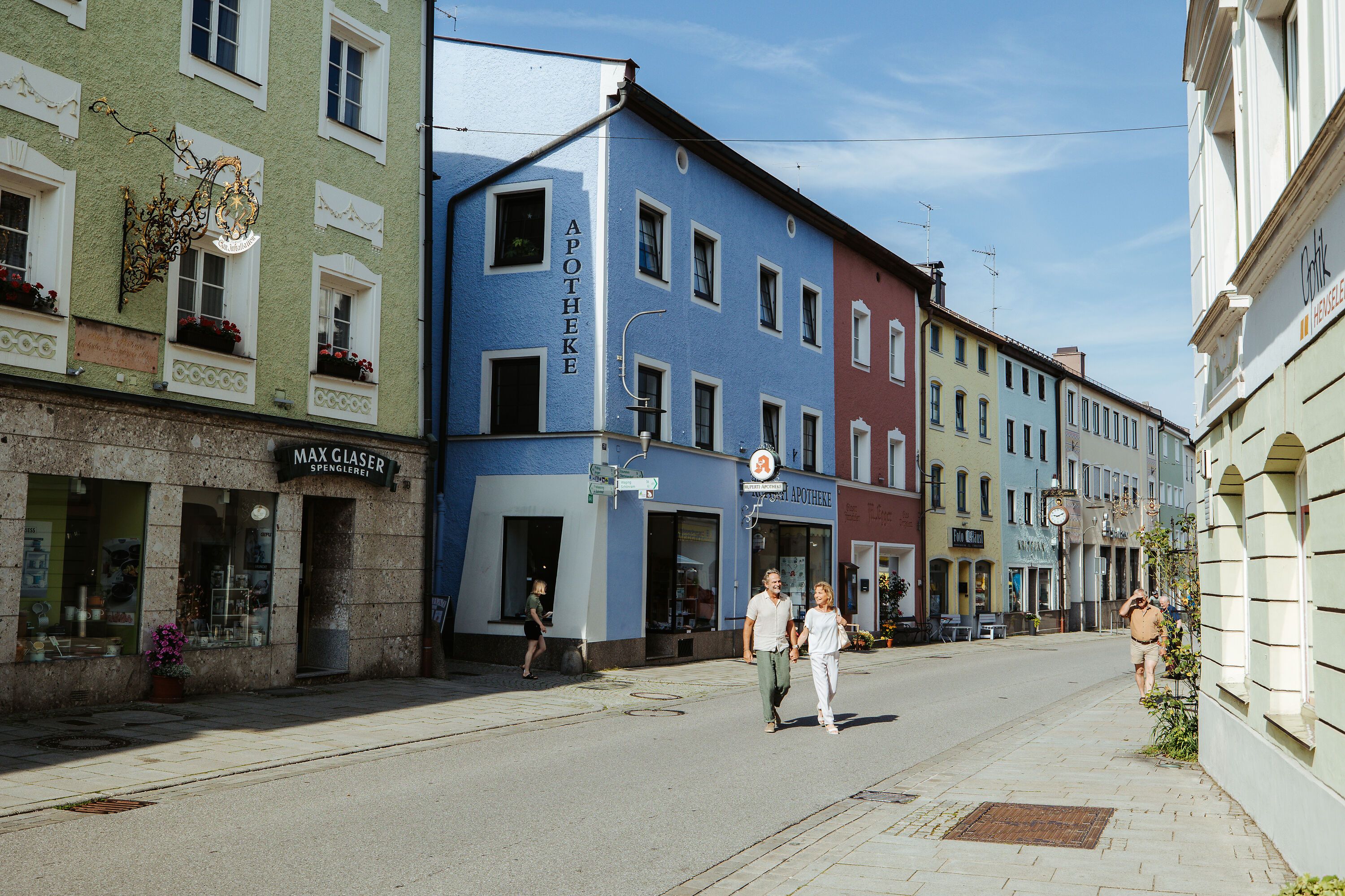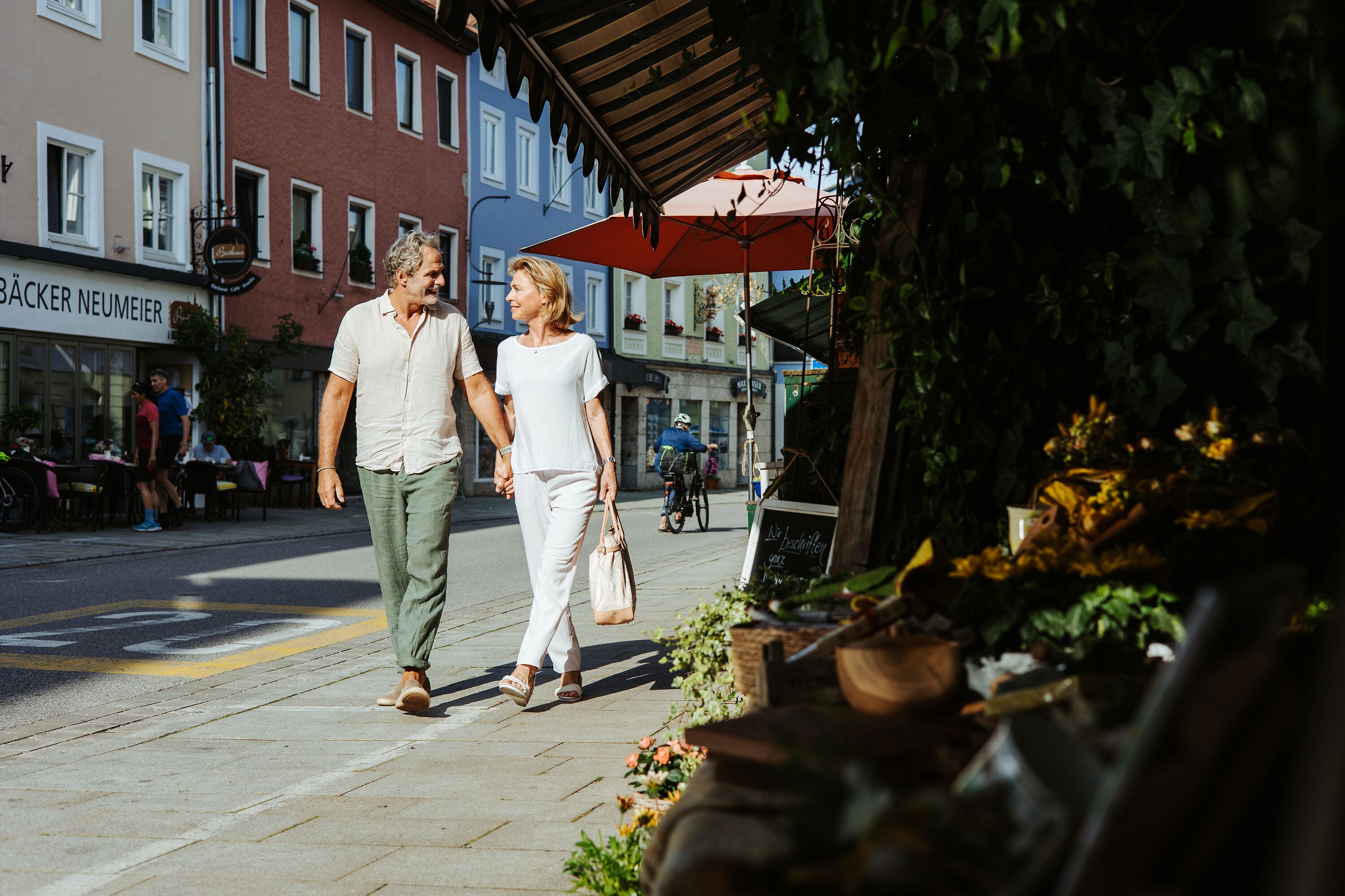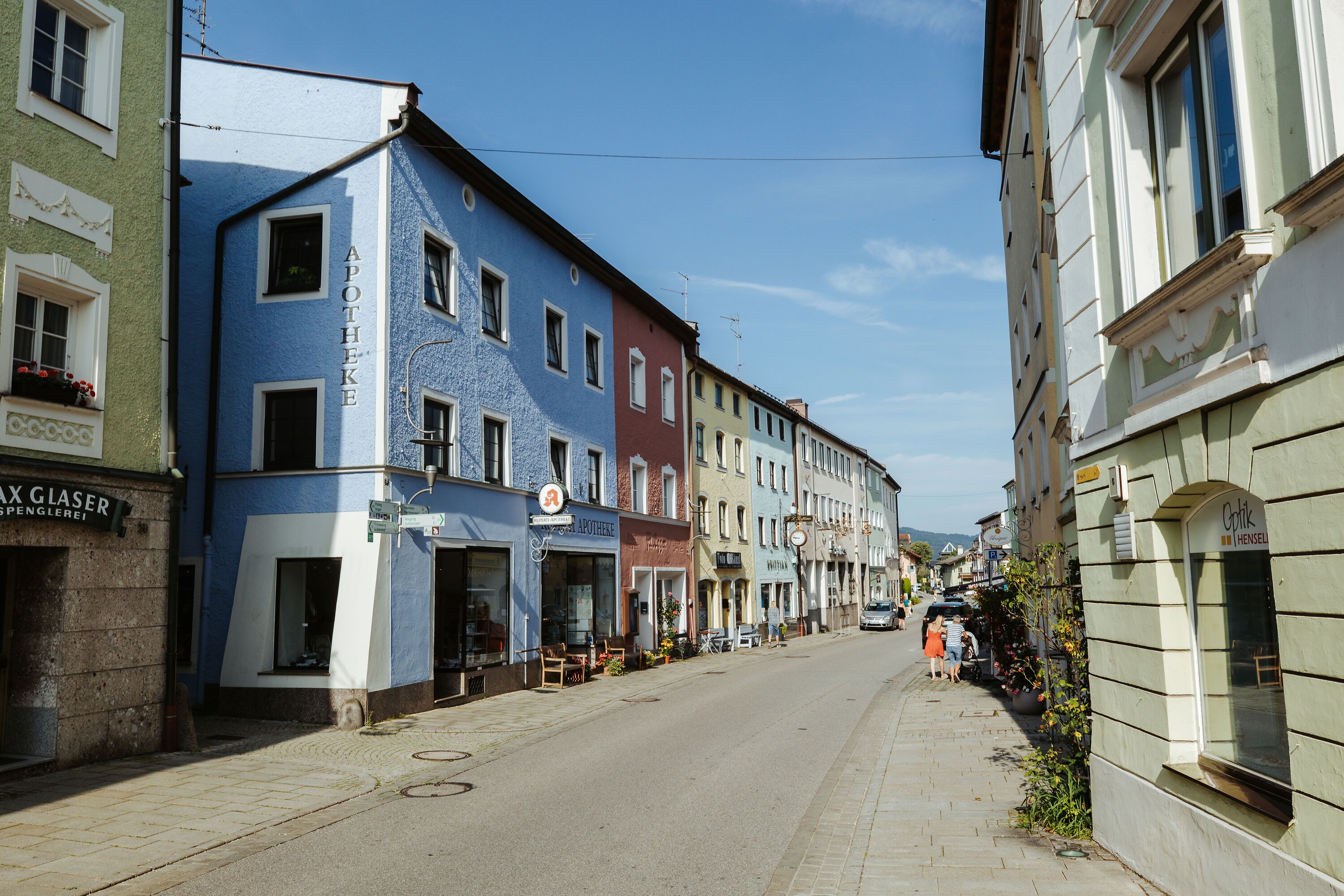 An lauen Sommerabenden kann in der idyllischen Marktstraße im Inn-Salzach Stil in Teisendorf mit vielen kleinen Geschäften und Lokalen, die zum Flanieren und Einkaufen einladen, italienisches Flair aufkommen.