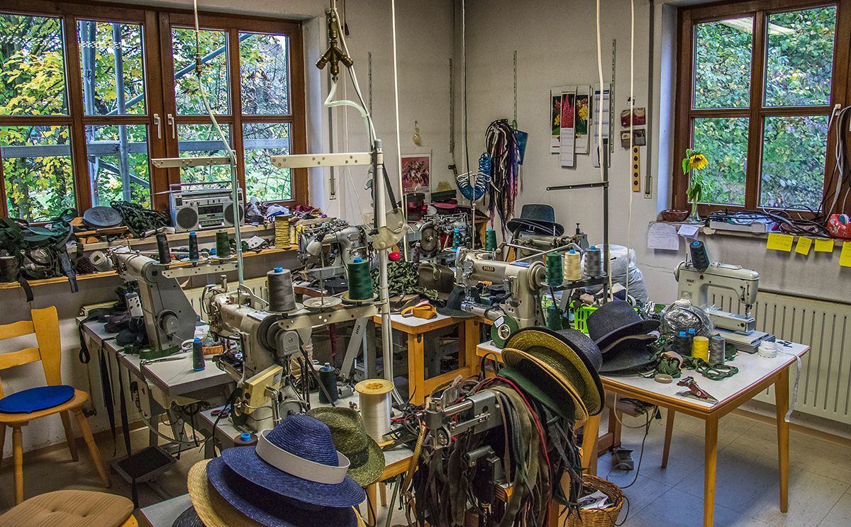 Am Eingang der Marktgemeinde Teisendorf steht die Werkstatt mit Ladengeschäft von Hut Braun. Im Obergeschoss lagern tausende Rohlinge, die in der Werkstatt in Handarbeit in mehreren Arbeitsschritten ihre klassische Form und Farbe erhalten.