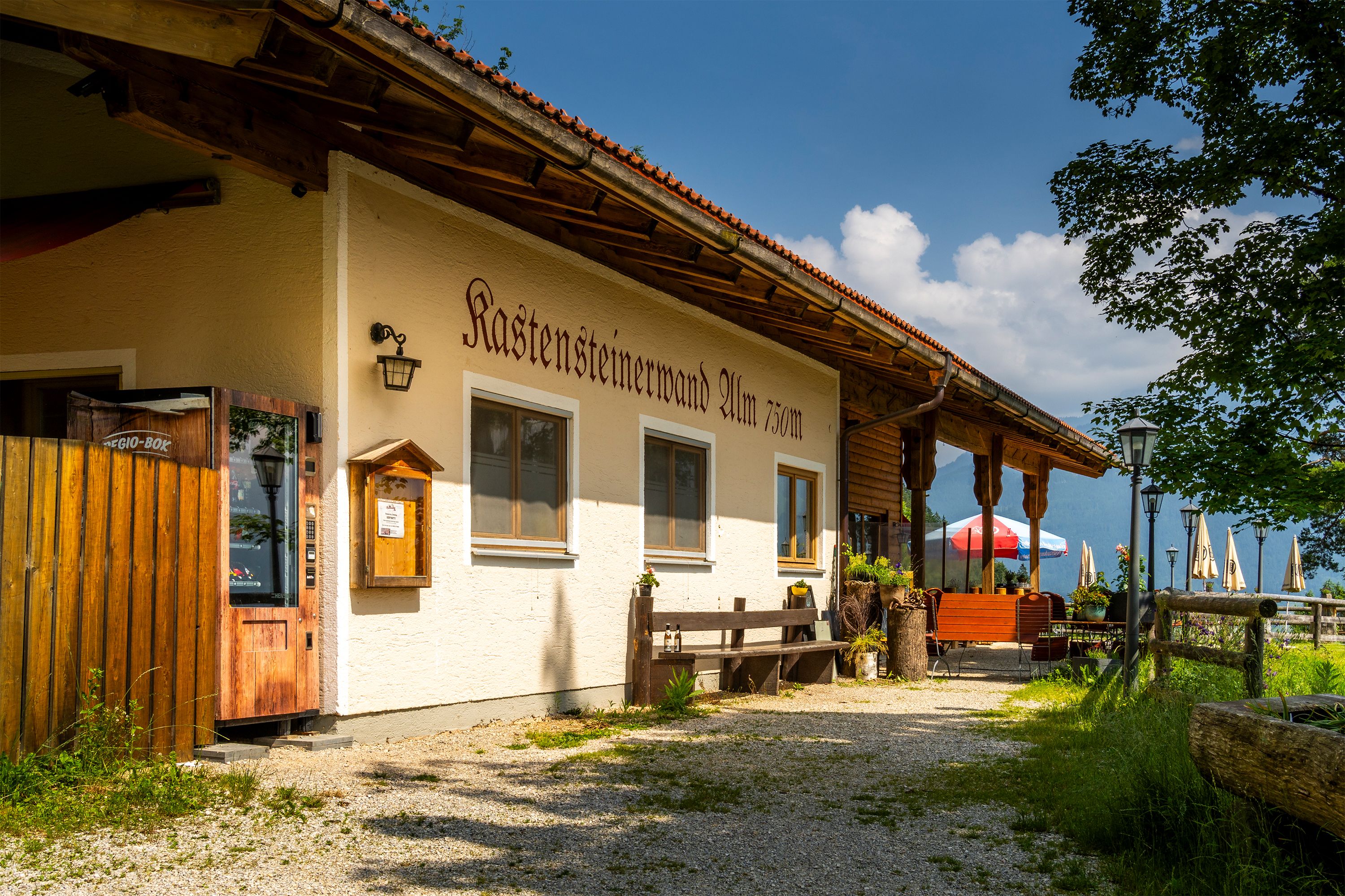 Nicht so steil ist der Aufstieg zur Kastensteinerwand von der Ostseite. Dieser Aufstieg über die Straße bietet sich als Abstecher einer Wanderung auf dem Maxilimilians Reitweg vom Aschauerweiher an. Bis zur Gaststätte Kastensteinerwand-Alm kann man auch mit dem Auto fahren. Die Straße ist zwar schmal und stellenweise steil, aber gut ausgebaut.