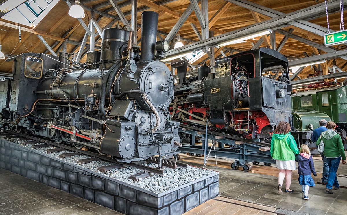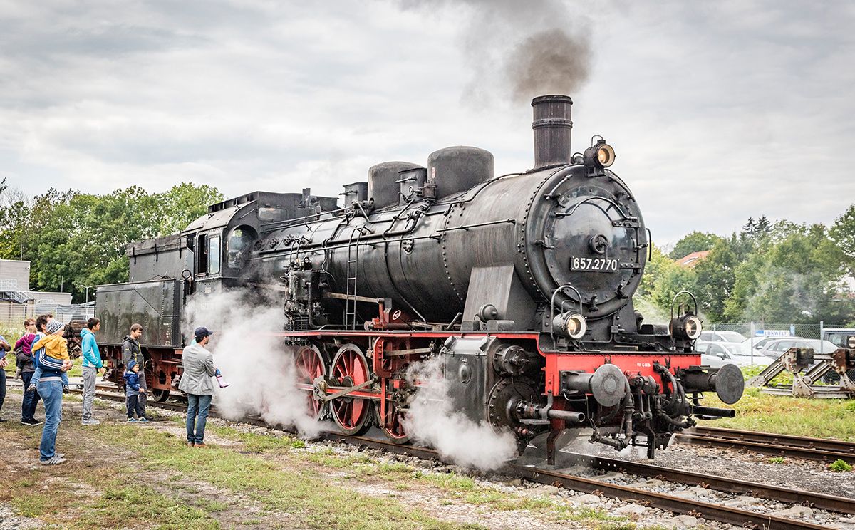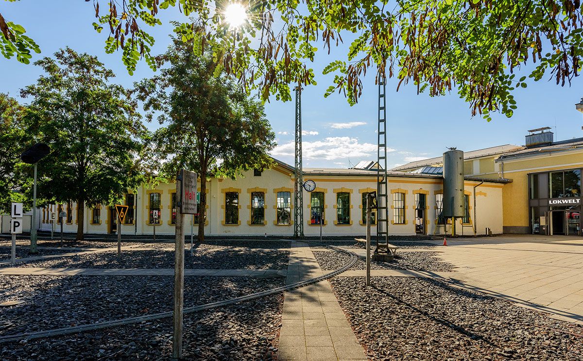 "Einsteigen bitte!" Das Eisenbahnmuseum Lokwelt bietet seinen Besuchern auf 17 Gleisen Exponate aus 150 Jahren Eisenbahngeschichte. Im Loksimulator können Groß und Klein einmal in die Rolle des Lokführers schlüpfen.