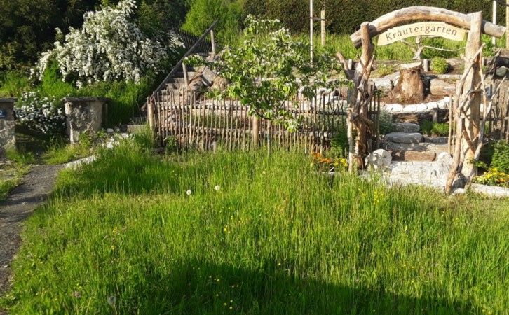 Im Naturschaugarten in Bischofswiesen wird gezeigt, wie man gestalterisch ansprechend Wildtiere in den Garten lockt und gleichzeitig Früchte und Kräuter ernten kann. Im Frühling bieten die Obstbäume und Beerensträucher den Insekten Pollen und Nektar, im Sommer finden sie auf der Blumenwiese und im Kräutergarten Nahrung.
