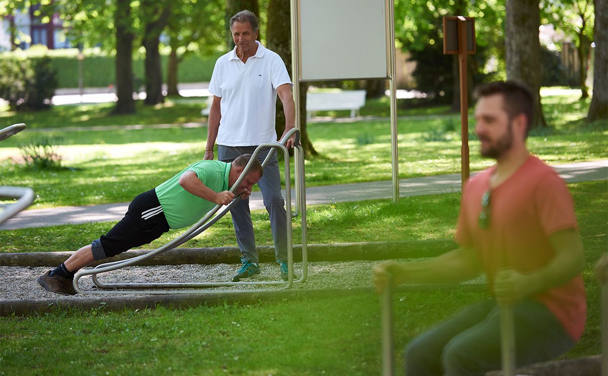Der Outdoor Fitness Parcours im Rupertuspark verlegt das Training nach draußen. Verschiedene Geräte machen es möglich den gesamten Körper, sowie den Gleichgewichtssinn an der frischen Luft zu trainieren. Bewegung, Training und frisches AlpenKlima vereint. Perfekt um das Immunsystem zu stärken, die eigene Ausdauer zu verbessern, die Natur zu erleben und das Alpenklima zu genießen. Ein Treffpunkt für Jung und Alt.