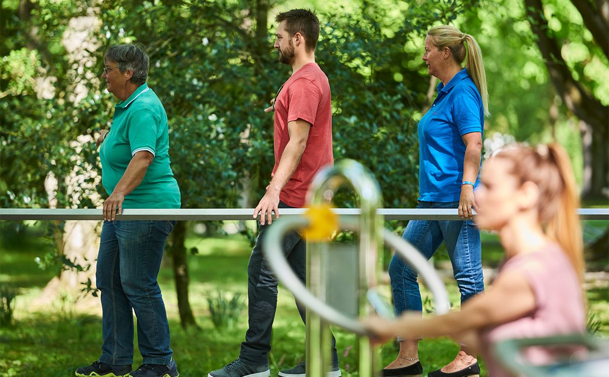 Der Outdoor Fitness Parcours im Rupertuspark verlegt das Training nach draußen. Verschiedene Geräte machen es möglich den gesamten Körper zu trainieren.