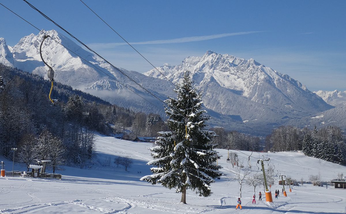 Das preiswerte Familienskigebiet Gutshof, früher bekannt als Skytop, liegt direkt am Obersalzberg. Hier finden die Brettlfans ideale Bedingungen. Eine Beschneiungsanlage sorgt für beste Schneeverhältnisse. Das Panoramarestaurant bietet eine ausgezeichnete Küche. Genießen Sie nur wenige Autominuten von Berchtesgaden entfernt, unbeschwertes Skivergnügen und eine einmalige Aussicht.